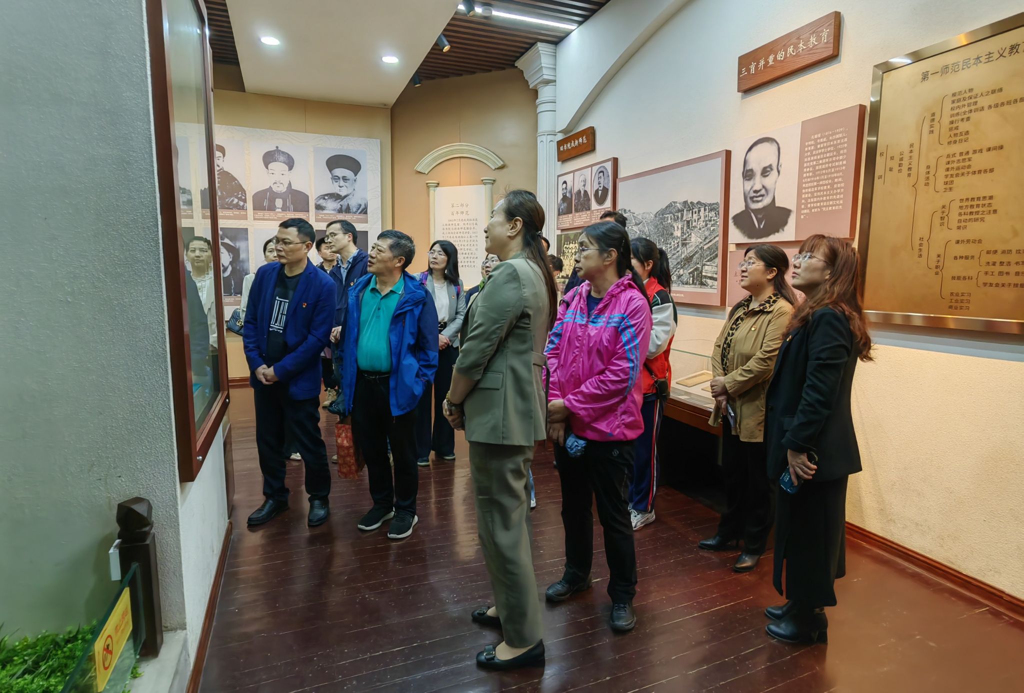 4月3日下午,双方前往湖南第一师范学院城南书院开展联学共建调研实践活动,先后参观了大礼堂、八班教室、冷水浴古井、自习室、阅报室、君子亭等多个红色纪念点,了解学习了一师就如何利用好红色资源、发扬好红色传统、传承好红色基因的实践情况。追随着习近平总书记的脚步,身处中国革命的红色摇篮,大家不时驻足停留,抚今忆昔、交流感想,感悟百年筚路蓝缕,仿佛穿梭时光同革命先辈相遇,百余年前那段激情澎湃的岁月复现于心。