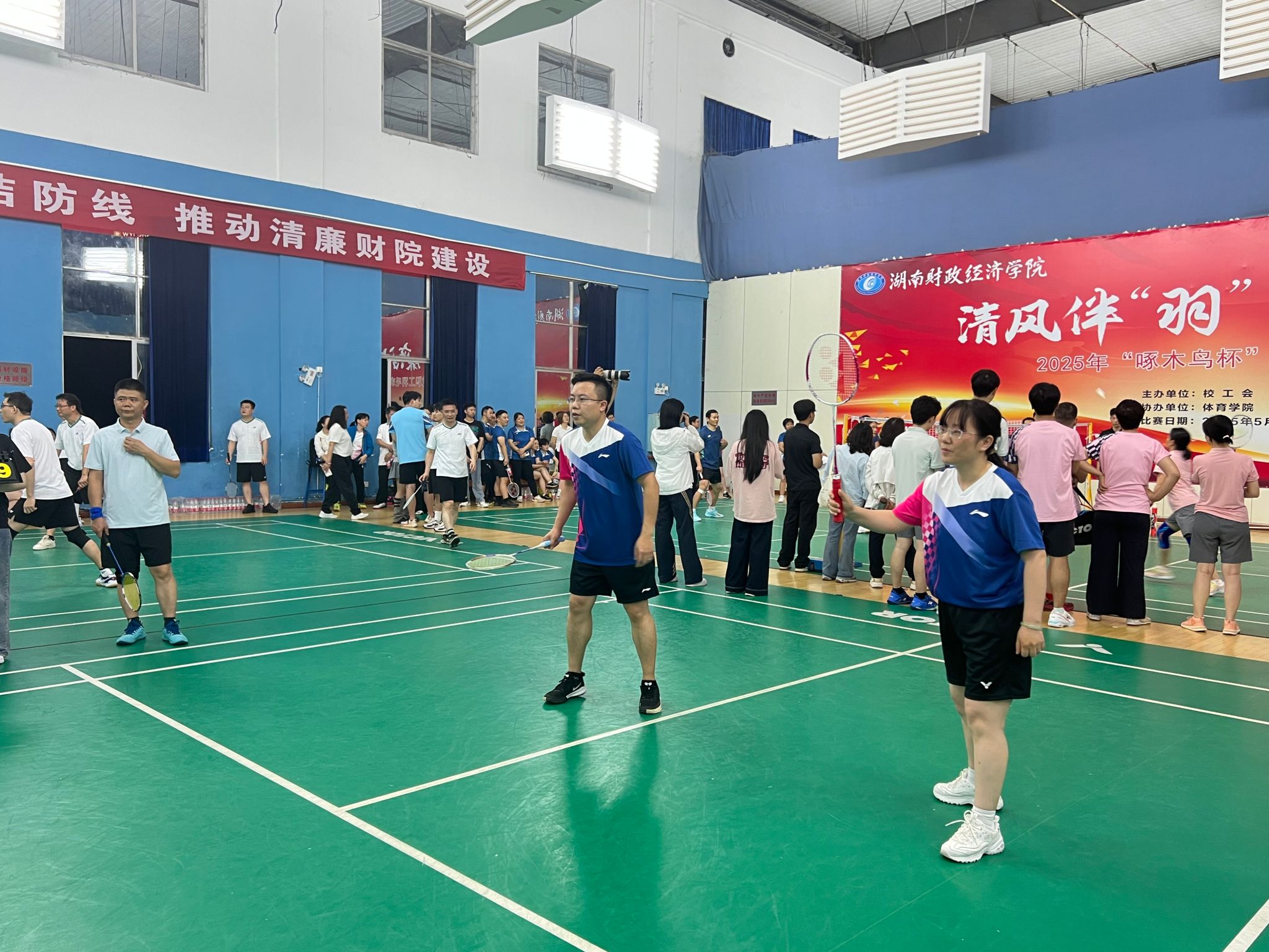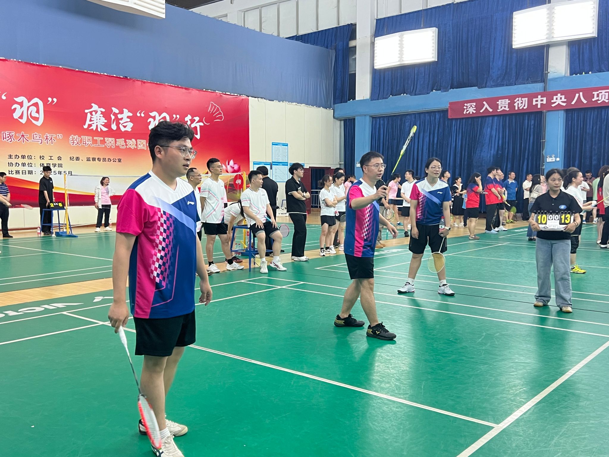 (本网讯)5月7日晚,2025年best365中国官方网站“啄木鸟杯”教职工羽毛球团体赛正式开启。本次活动由校工会和纪委、监察专员办公室主办体育学院承办,旨在加强教职工之间的合作、交流与互动,共享快乐,健心强体,营造风清气正、健康向上的工作氛围。我院分工会积极组织与筹备,组建了一支充满活力和干劲的队伍,共同为团队的荣誉而拼搏。