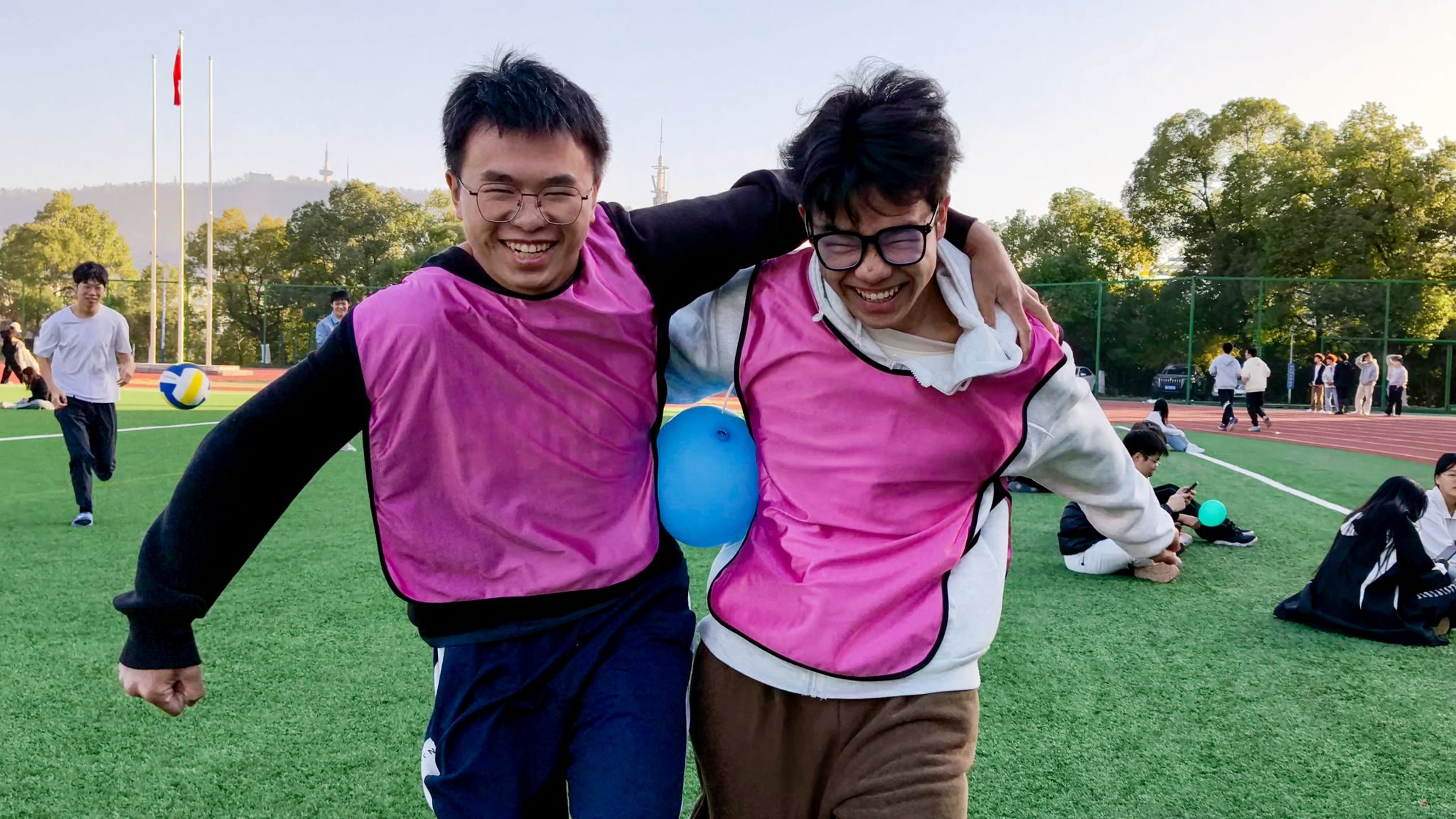 防艾聚暖,青春接力。活动正式拉开帷幕,赛道上的四大特色活动精彩纷呈,竞争激烈。来自经济地理学院的队员们奋勇拼搏:“‘艾’心护球”环节,队员们默契配合用身体夹球前行,诠释协作力量;“‘艾’的密码”打卡点,大家通过防艾知识答题解锁密码,收集密码碎片解锁关卡,让知识入脑入心;“数字传球”与“生命接力传送带”任务里,互相协作报数、传球,既考验了反应力,也让防艾关键词通过语句创作深植于心。