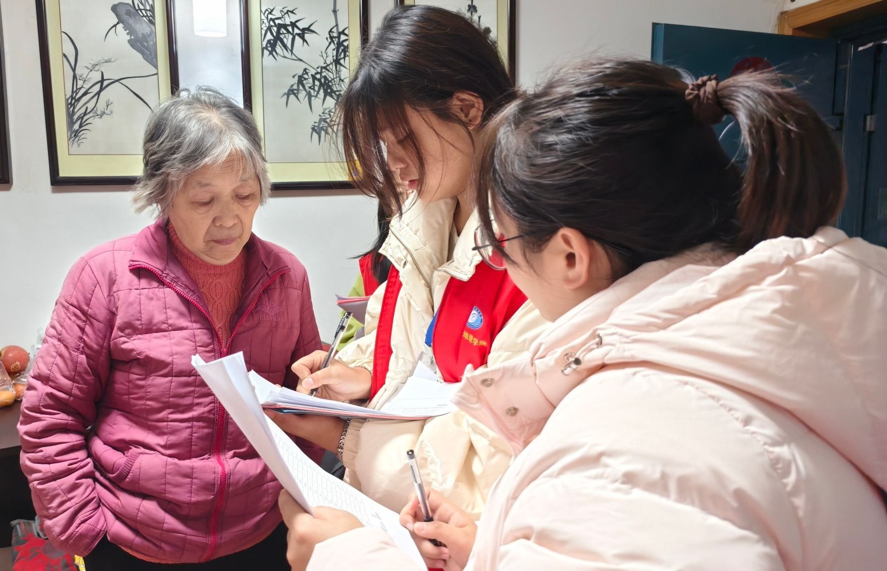 (本网讯)为切实铸牢社区安全防线,传递对特殊群体的关怀与温暖,12月3日下午,经济地理学院青年志愿者协会组织14名志愿者,在长沙市开福区精英路社区党群服务中心开展“青春敲门”入户安全宣传志愿服务活动,以实际行动诠释志愿精神,为社区居民送上“安全大礼包”。