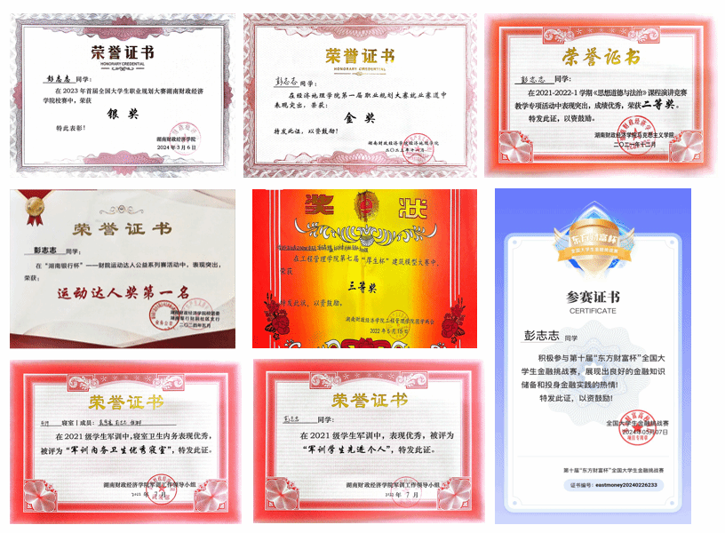 大学期间,彭志志的课余生活丰富多彩。加入校110护卫队,同时积极参与各类赛事活动,如职业规划、运动达人公益、建筑模型、演讲竞赛以及金融挑战等活动。其中,演讲比赛和职业规划大赛,不仅锻炼了彭志志的口才,提升了表达能力,还让克服紧张情绪,实现自我突破。这些活动在缓解学习压力的同时,也为校园生活增添了缤纷色彩