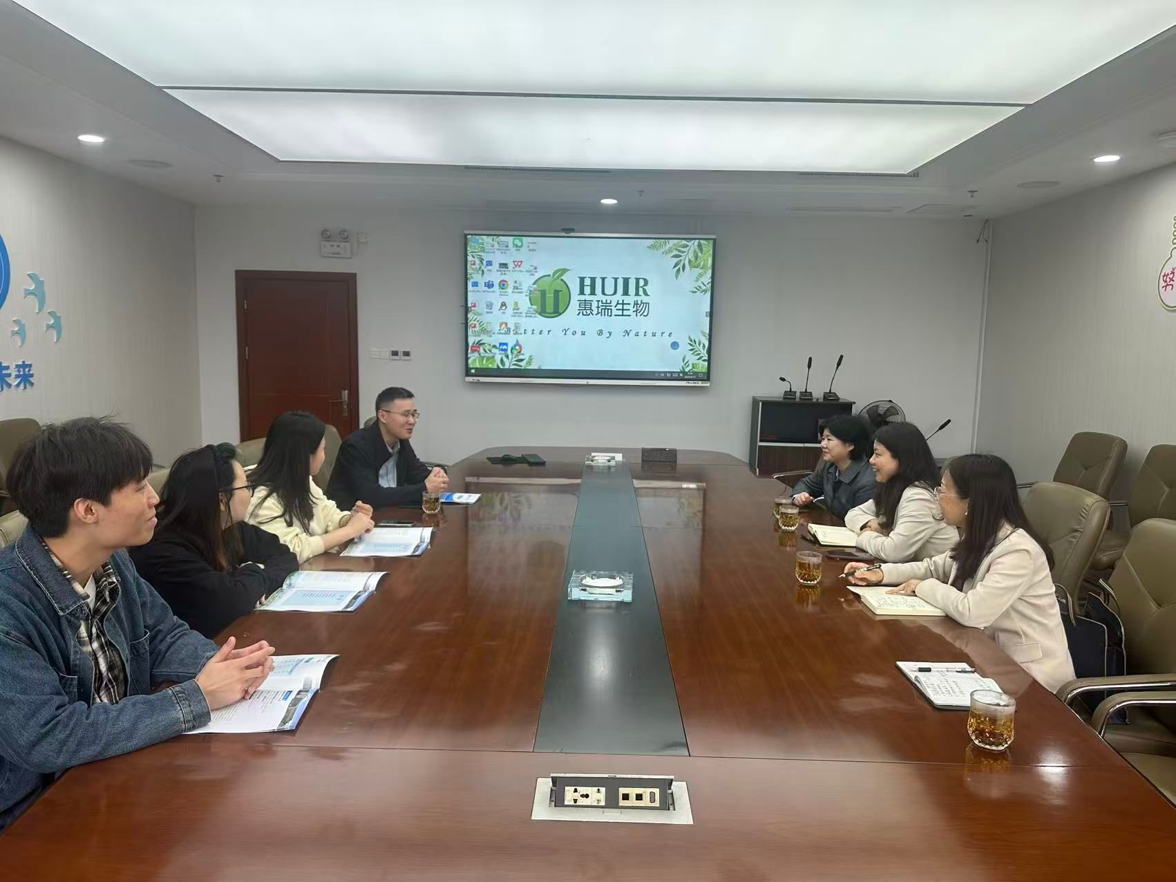 (本网讯)为深入贯彻落实教育部“访企拓岗促就业”专项行动要求,深化校企协同育人机制,拓宽毕业生实习就业渠道。4月15日上午,经济学院副院长陈雯,党委副书记刘英、专任教师姚志毅、就业专干谢龙一行赴长沙市惠瑞生物科技有限公司开展走访调研。