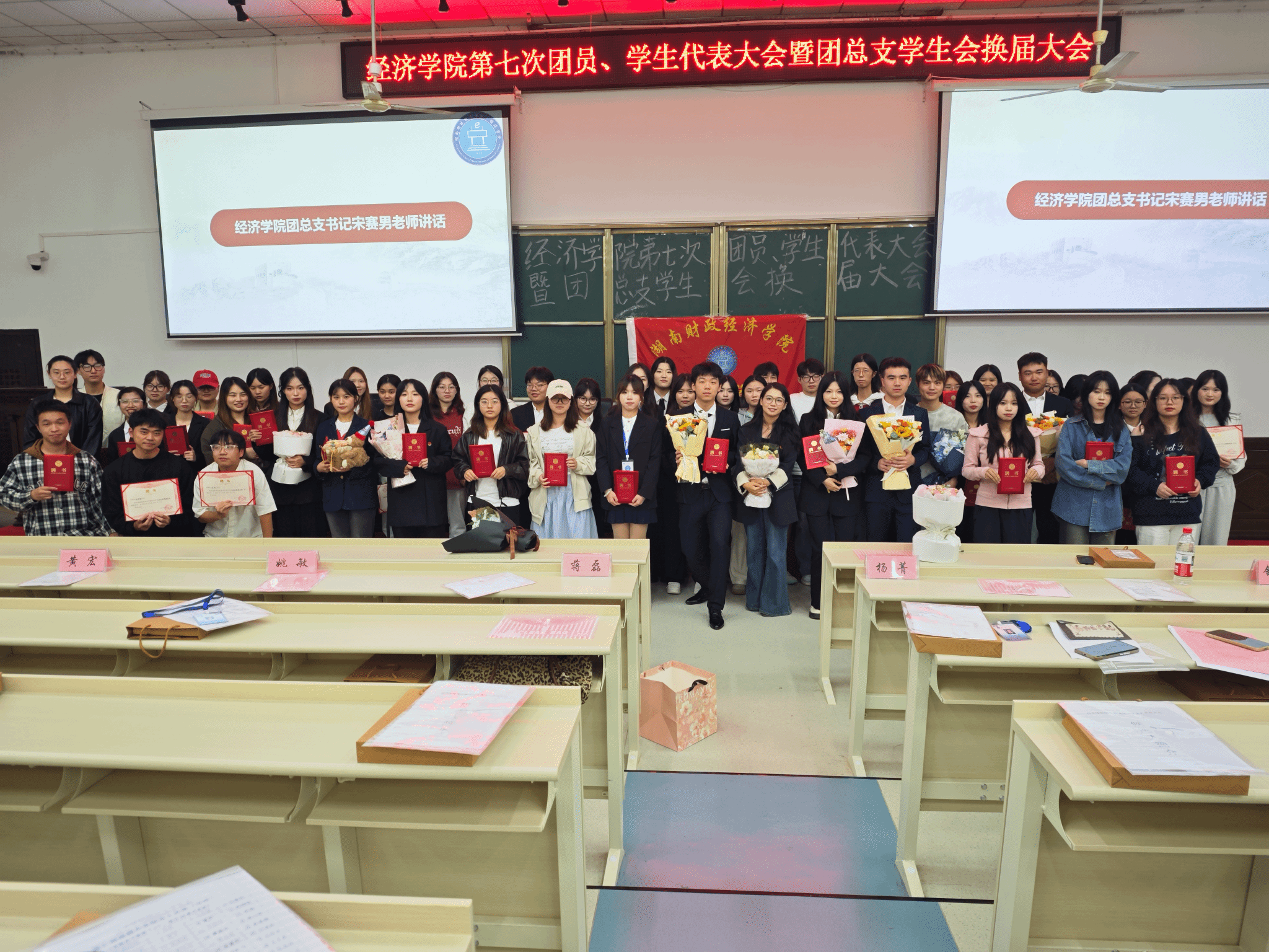 经济学院第七次团总支学生会换届大会主席团合影留念