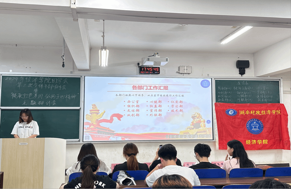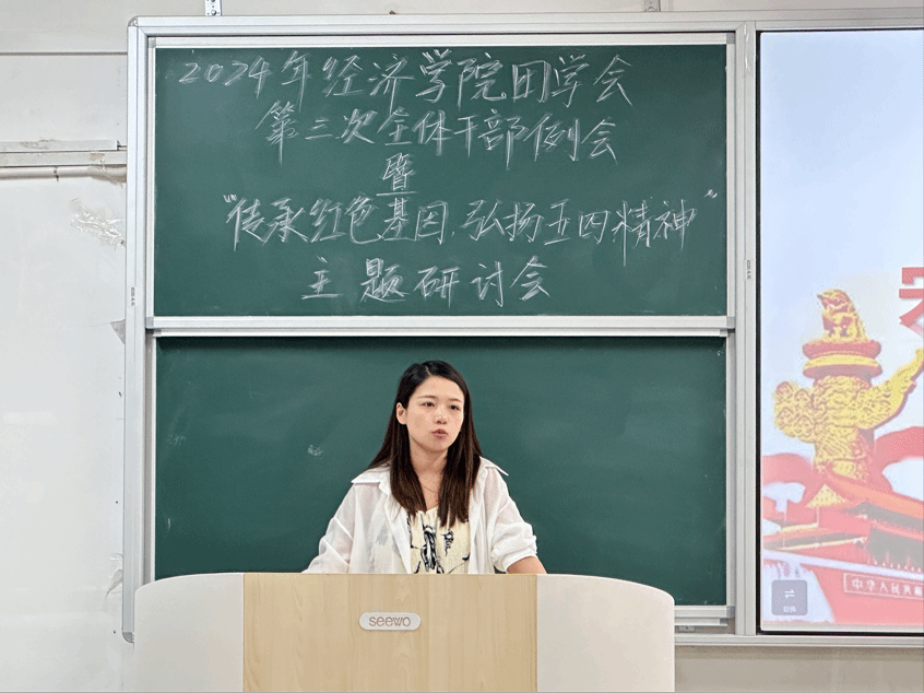 (本网讯)5月16日,经济学院团总支学生会(以下简称“团学会”)2024年第三次全体干部工作会议暨“传承红色基因,弘扬五四精神”专题研讨会于三教3209成功举行。经济学院团总支书记宋赛男和团学会全体干部出席了本次会议。本次会议由办公室副主任谭茜主持。