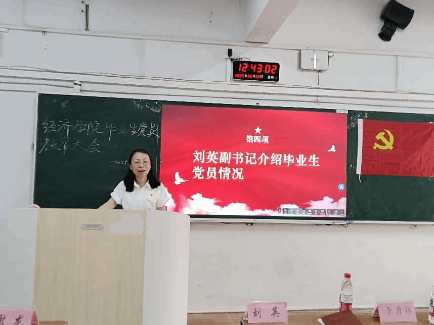 随后,经济学院党委副书记刘英详细介绍了2025届毕业生党员整体情况。她勉励全体毕业生党员珍视在校学习的宝贵经历,将其转化为未来人生道路上的精神财富。