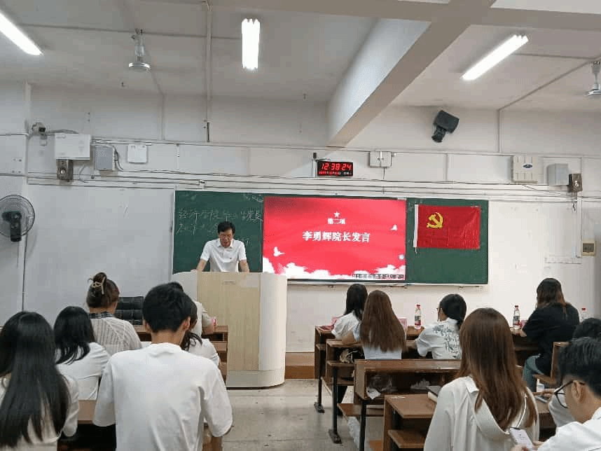 经济学院院长李勇辉首先作重要讲话。他充分肯定了毕业生党员在校期间的优异表现,并殷切寄语:希望同志们牢记党员身份,以高标准严格要求自我,在新时代广阔天地中勇担使命,谱写人生华章。