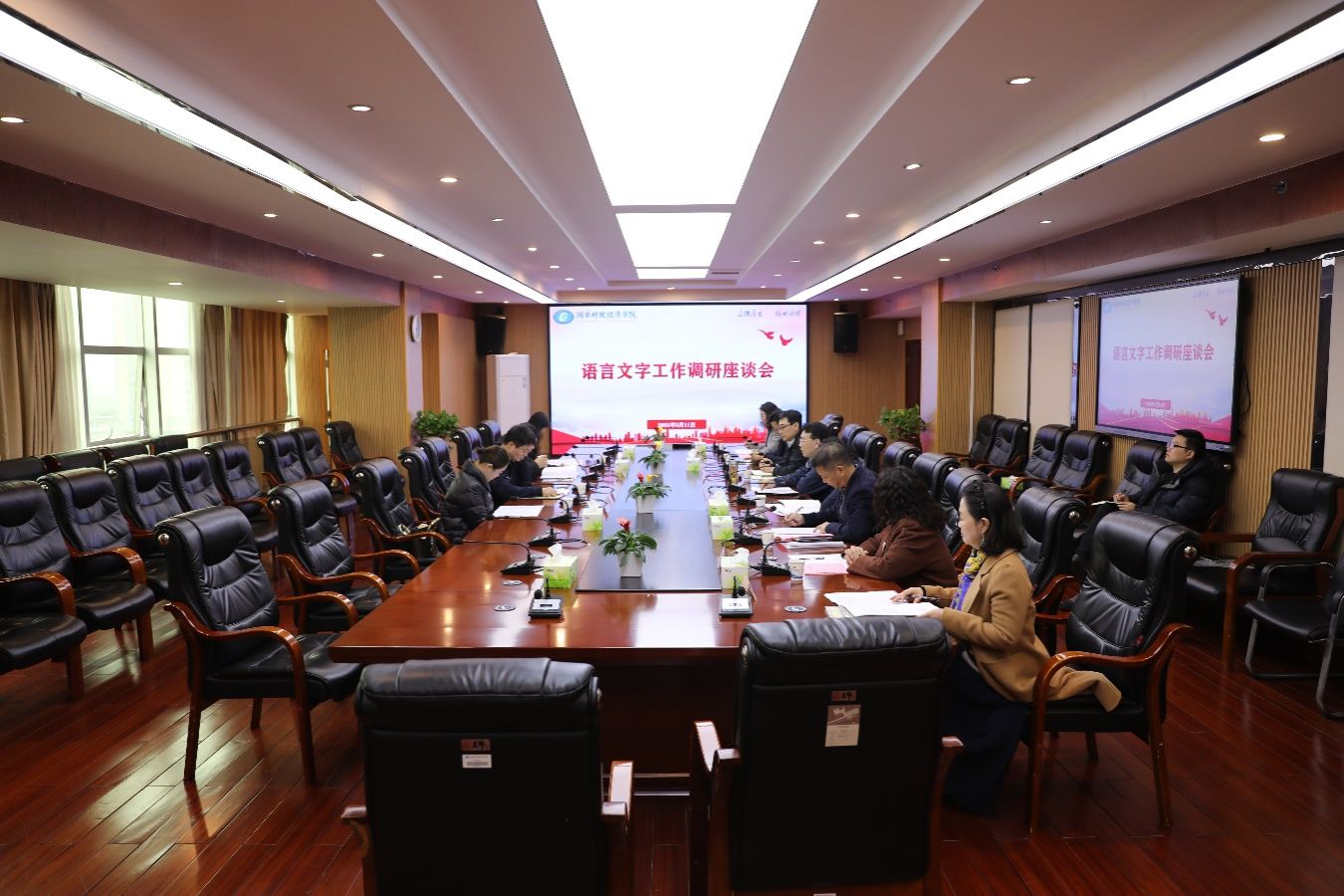3月11日,湖南省语言文字培训测试中心主任余伟新一行来best365官网调研语言文字工作,校党委书记易棉阳、副校长潘爱民以及党政办、教务处、人文与艺术学院、外国语学院的主要负责人参加了座谈会,会议由易棉阳主持。