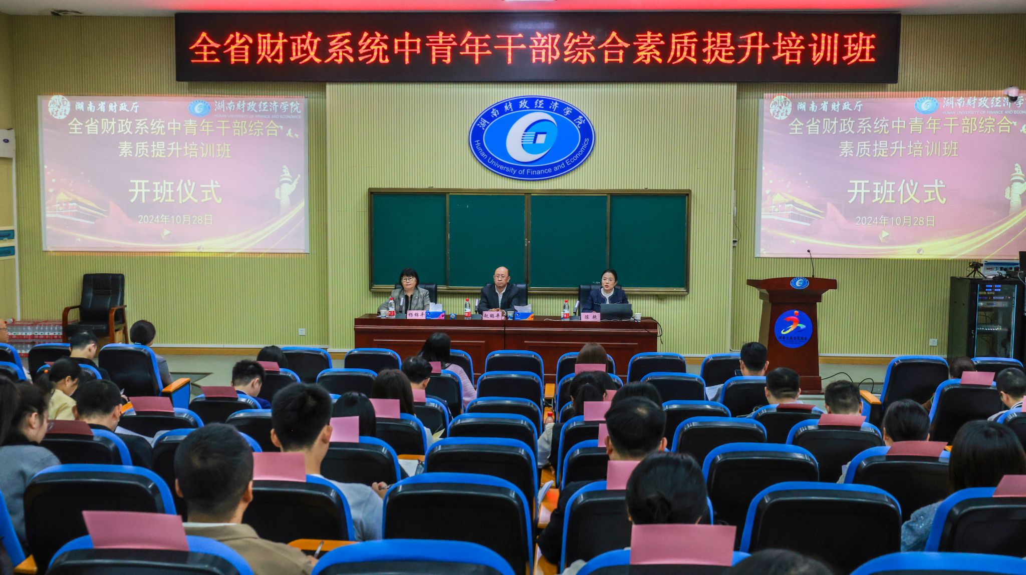 (本网讯)10月28日,best365官网承办的湖南省财政系统中青年干部综合素质提升培训班正式开班。best365官网党委委员、副校长赵鹤平,湖南省财政厅干教中心主任陈艳,湖南省财政厅干教中心三级调研员杨锦平,湖南省财政系统中青年干部综合素质提升培训班60余名学员参加开班仪式。