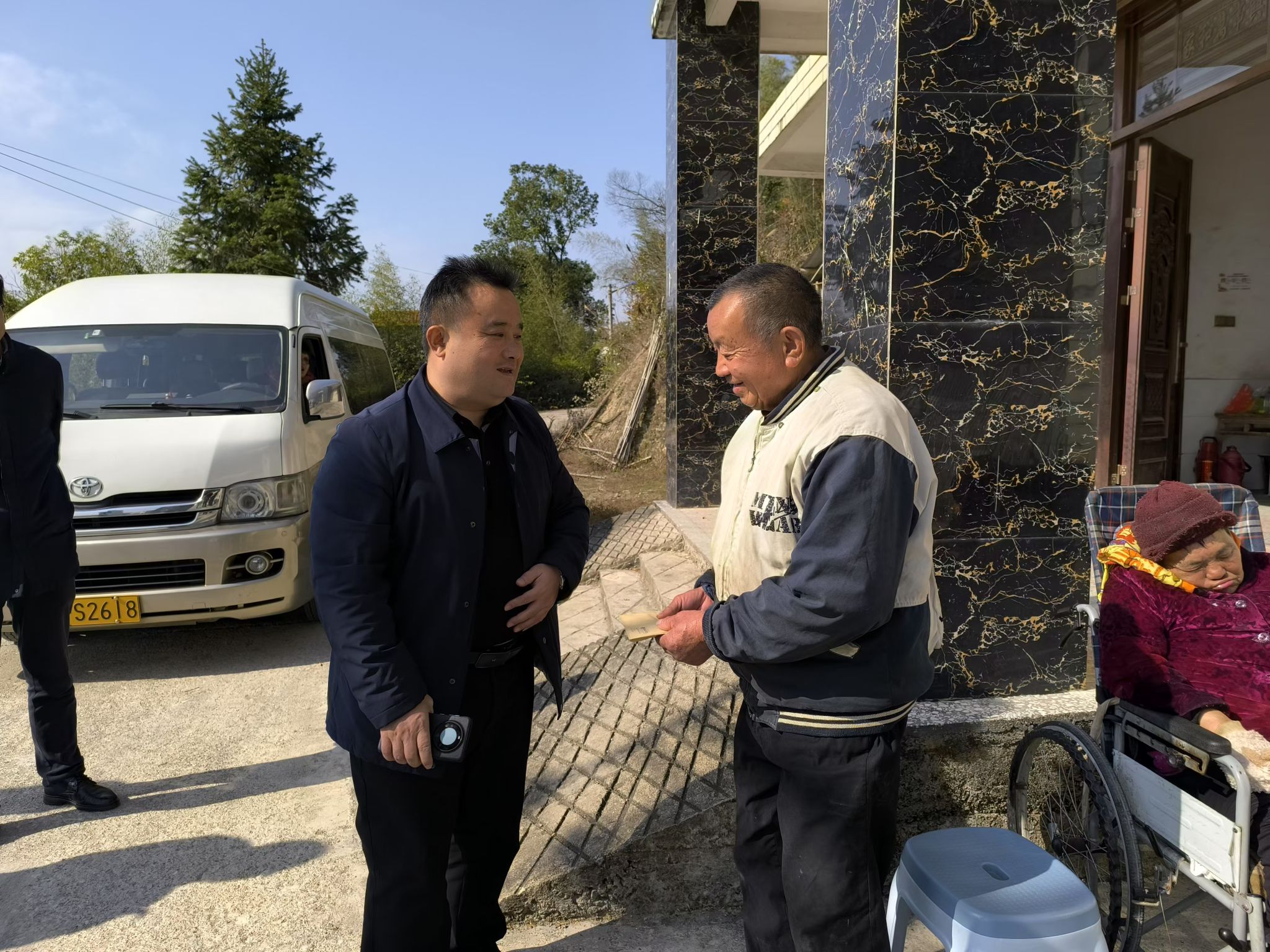 座谈会后,潘爱民带队走访慰问三户困难群众家庭,向他们送上慰问金,详细了解他们近期生活生产情况,并送上良好祝福