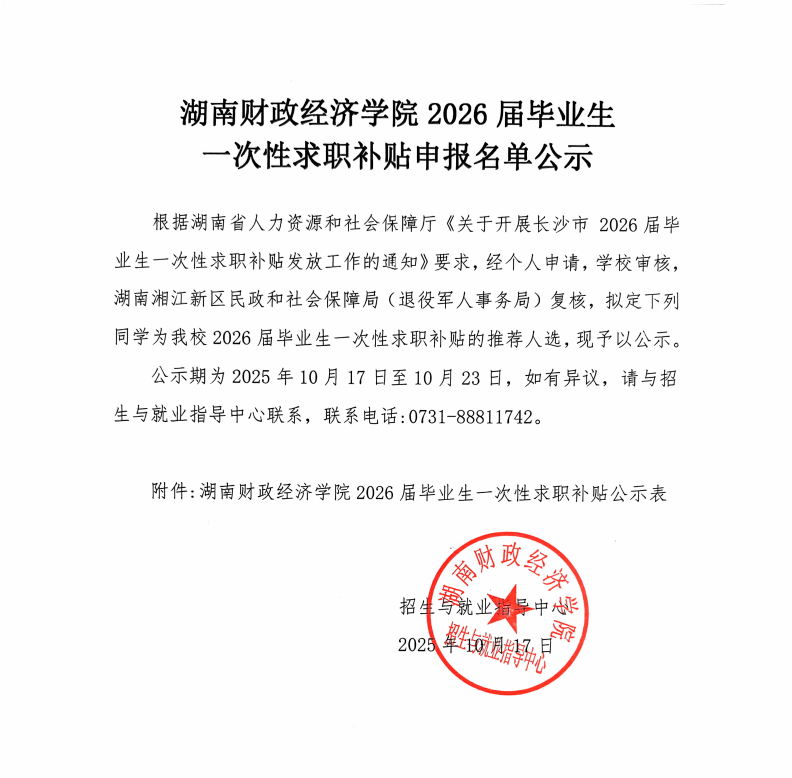 best365中国官方网站2026届毕业生 一次性求职补贴申报名单公示