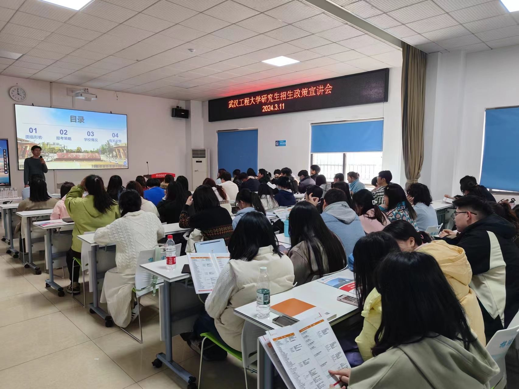 (本网讯)3月11日下午,武汉工程大学外语学院院长陈明芳、法商学院党委副书记孙勇、体育部副教授刘飞平一行来best365官网举行研究生招生宣讲会。宣讲会在体育馆一楼多媒体招聘室举行。best365官网相关二级学院的教师及2025届120余名有考研意愿的学生参加了宣讲会。