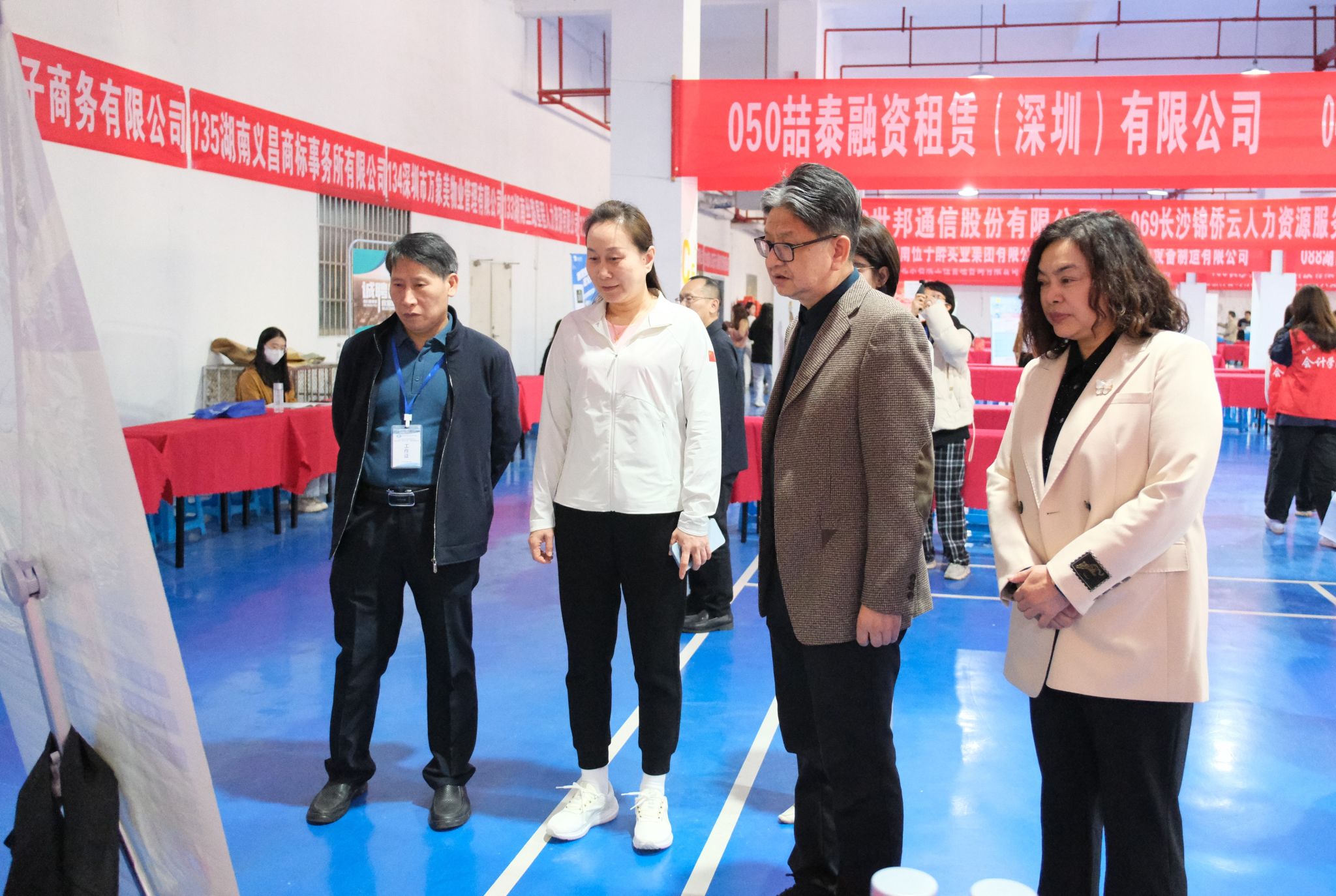 (本网讯)3月27日下午,学校2024届毕业生春季双选会暨长沙市2024年“春风行动”校园招聘活动在主校区体育馆一楼南运动场举行。校长刘长庚,校党委副书记苏玲,长沙市人力资源和社会保障局党组副书记、副局长李德清现场指导工作。
