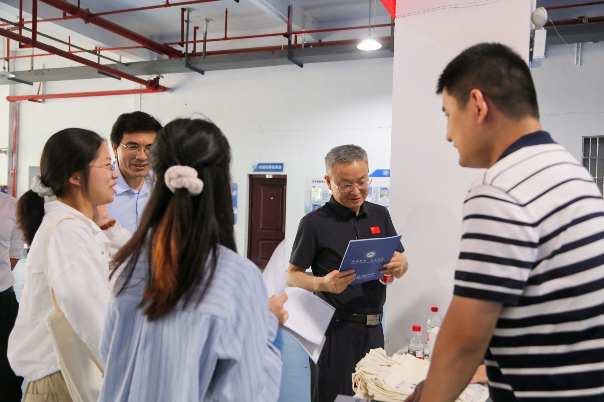 刘钟理(右二)与高校研招老师交流 邓柳/摄