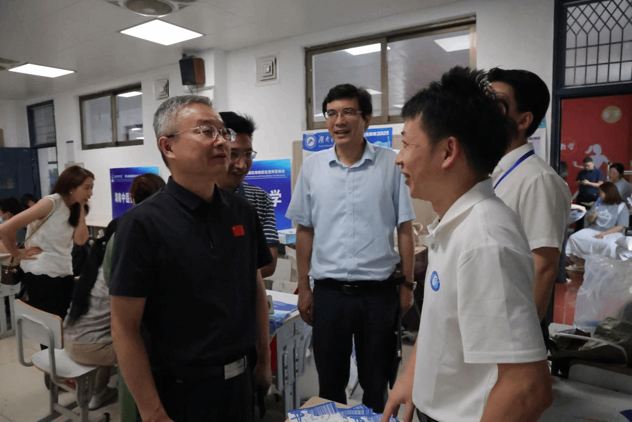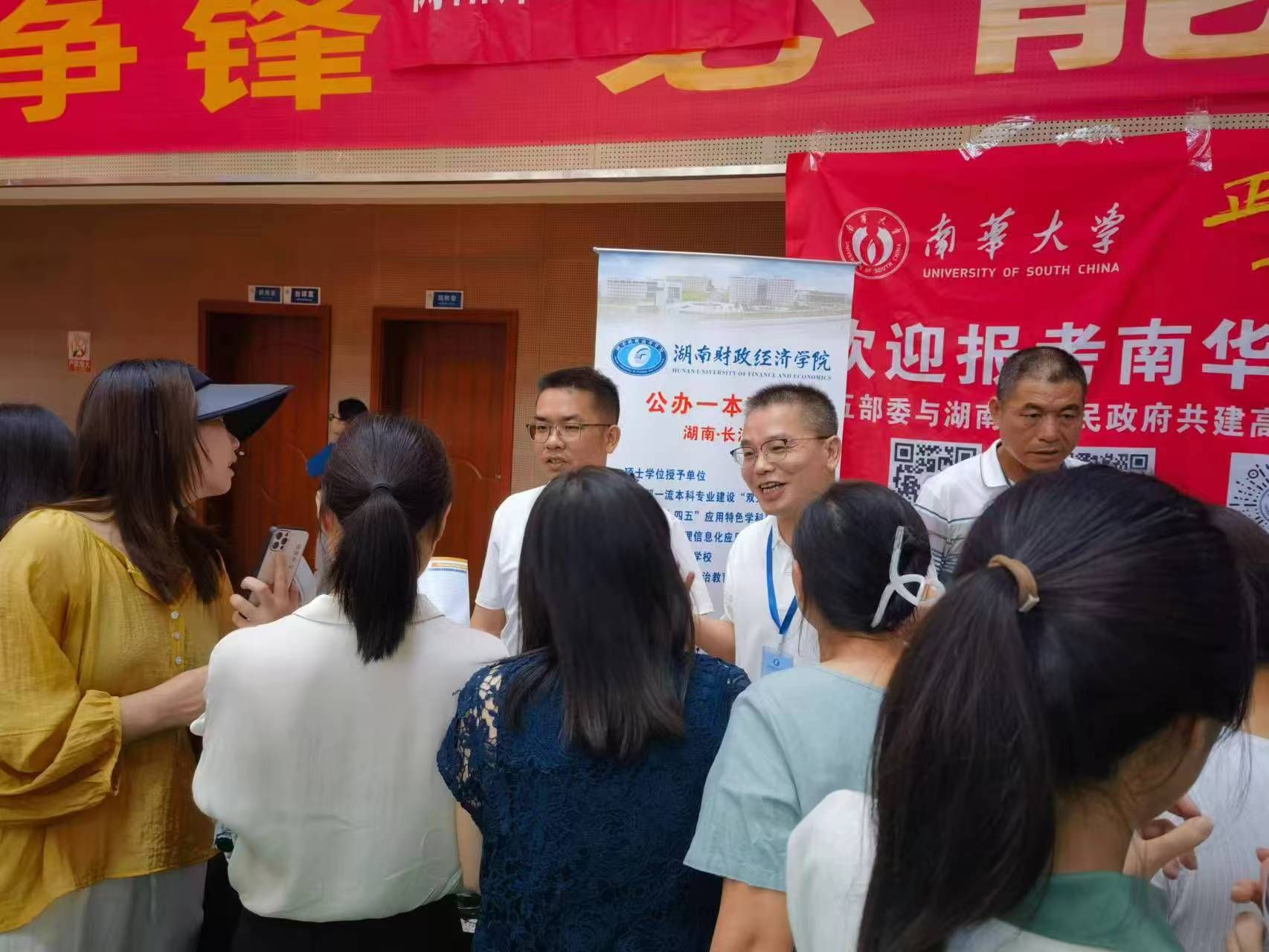 6月24日至28日,学校进行统筹安排。其一,遵循“一院一市(州)”原则,组织百余名教师,由学院院长(书记)带队,分赴全省14个市州及其下辖各县区的重点高中以及best365官网优质生源基地中学,开展线下招生咨询、志愿填报辅导、生源基地回访等活动;其二,派遣部分招生宣传老师参加升学在线考后咨询会和湖南教育电视台考后咨询会,前往省内各市州高中进行现场宣传,为考生提供一对一的政策解读和志愿填报服务;其三,组织教职工前往长沙红星国际会展中心参加湖南省教育博览会,在现场为考生及家长提供志愿填报咨询服务;其四,6月26日至27日,招生与就业指导中心联合各二级学院及相关职能部门举办校园开放日活动,现场接待考生及家长900余人次,为考生及家长在专业填报方面答疑解惑。副校长刘钟理带队前往湖南省教育博览会和湖南师大附中招生宣传现场,慰问招生宣传工作人员,并与高考学子沟通交流。