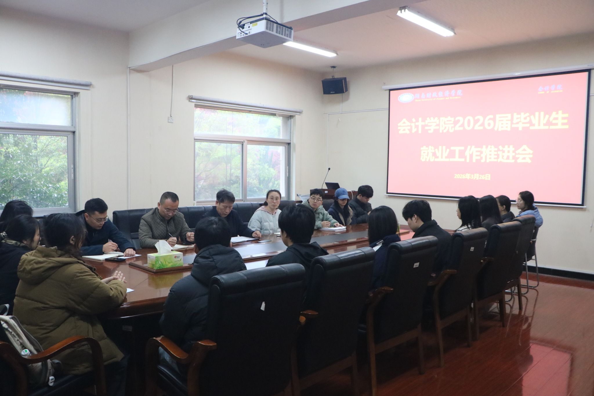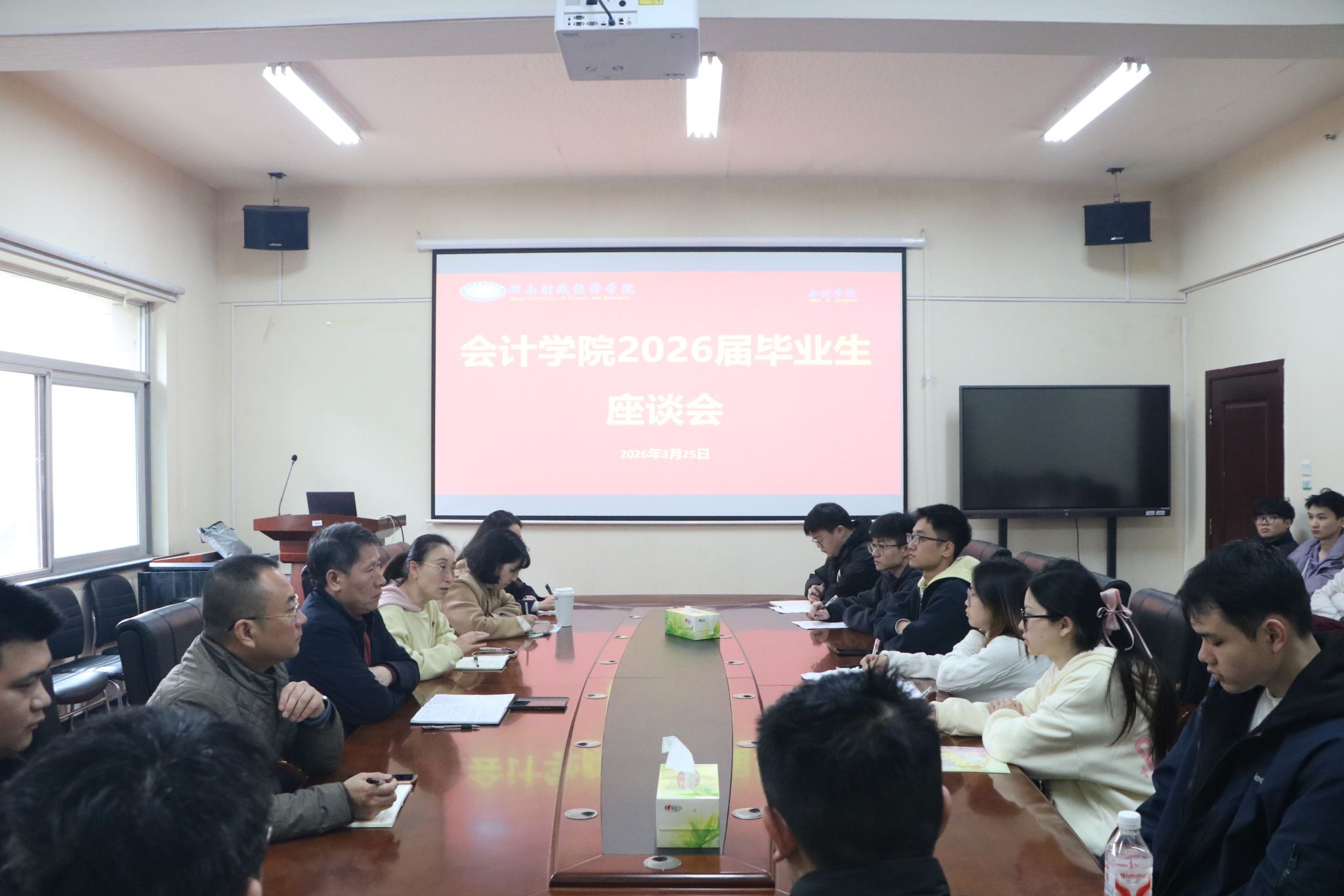 (本讯)3月24日至26日,我院连续召开三场2026届毕业生就业工作系列推进会。会计学院党委书记戴恩湘、副书记肖芳全程出席,辅导员管超男、詹子露、胡旭、张繁及毕业生代表依次参会,会议由就业专干蔡益华主持。