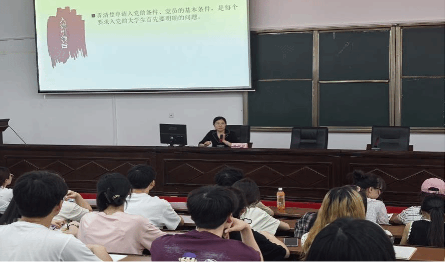 在授课过程中,许炉炉书记分别从申请入党的条件、党员应该具备的优秀品质、入党流程及注意事项等多方面展开介绍,多次以习近平总书记投身基层,带领人们群众过上美好生活为例,阐释了党员的先锋模范作用以及全心全意为人民服务的根本宗旨,让学员们更为深刻地了解党的人民性、实践性。最后,她要求学员们牢牢把握机会,提升自我,不断实践,努力向党组织靠拢。