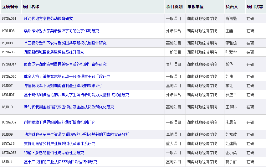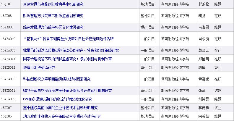 湖南省社科规划办对2015-2019年度立项课题试行网络结题,需要各项目负责人(详细名单见下表)在湖南省社科基金项目网络管理平台注册,完善个人立项信息,并提交,待审核后以备今后网络结题。