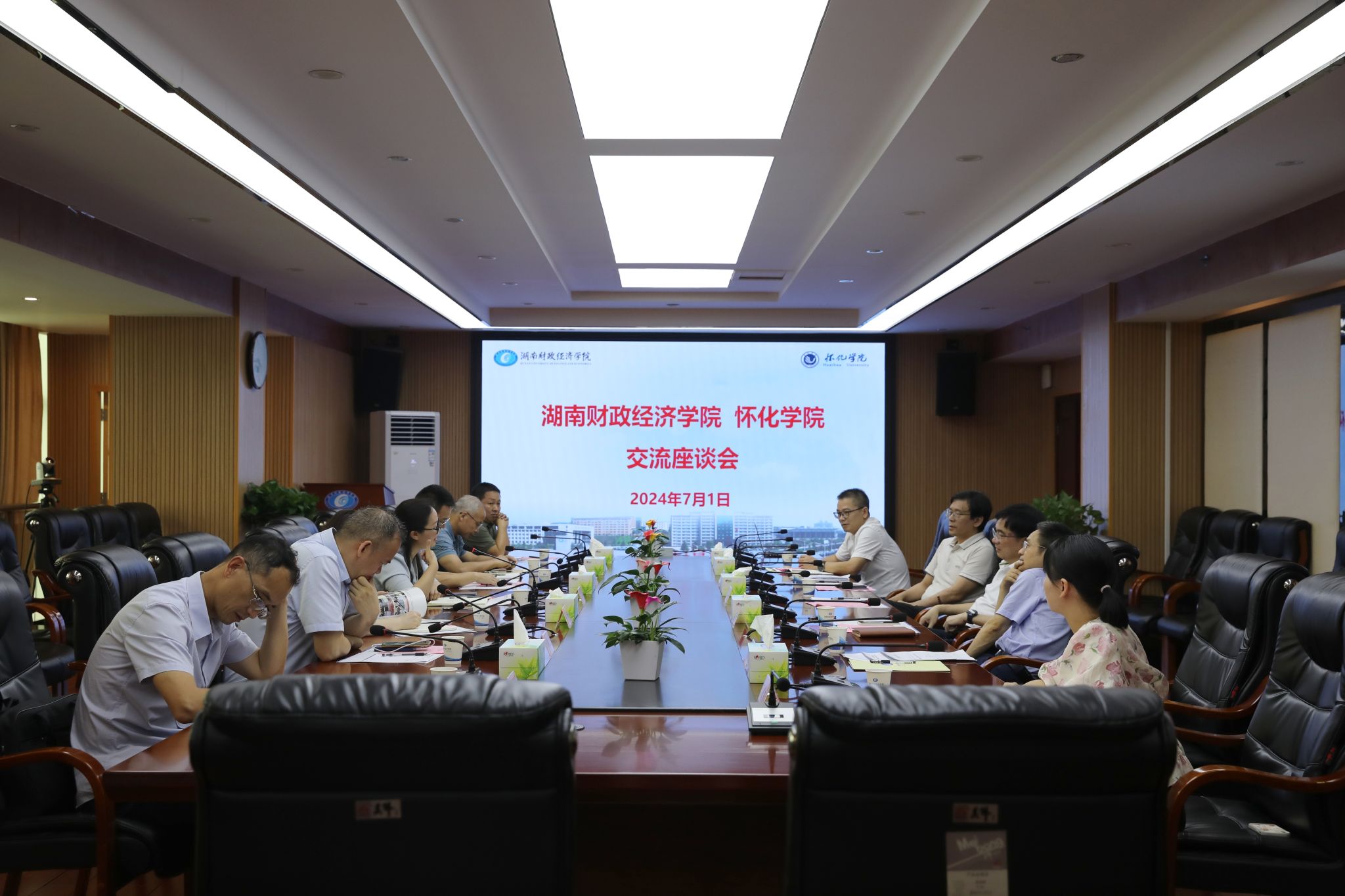 (本网讯)7月1日下午,怀化学院副校长周小李、科技与地方服务处处长欧阳跃军、学科建设与研究生工作处处长李思寰等一行七人到best365官网进行调研交流。学校副校长郭国强、财政金融学院院长刘辉煌等出席座谈会,会议由科研处处长李勇辉主持。
