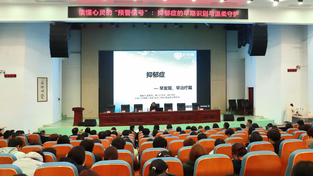 签约仪式后,进入心理健康讲座环节。蒲唯丹以《读懂心灵的“预警信号”:抑郁症的早期识别与温柔守护》为主题,系统阐述了抑郁症的发病率、核心症状与早期识别方法。他强调,抑郁症并非单纯的情绪问题,而是一种需要科学干预的精神障碍,早期识别尤为关键。讲座中,他结合临床案例与科研数据,详细讲解了睡眠变化、兴趣减退、自我评价降低等预警信号,并介绍了规范的药物治疗、心理干预与物理治疗路径。最后他呼吁师生以科学、接纳的态度看待心理问题,鼓励学生在出现相关症状时积极寻求专业帮助,共同守护心理健康。