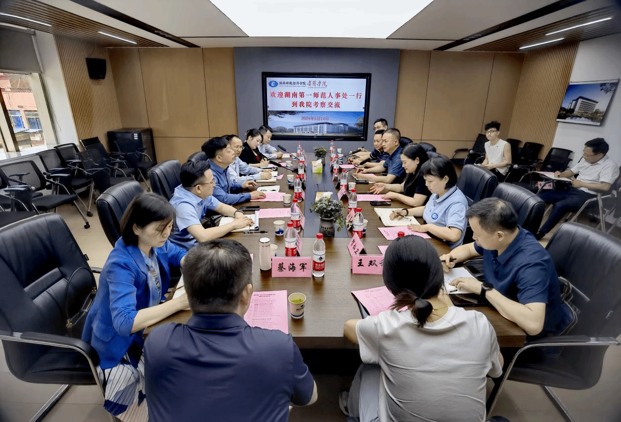 5月14日上午,湖南第一师范学院人事处处长黄小喜一行来我院考察交流并举行交流座谈会。湖南第一师范学院学生工作部部长张福国、城南书院党委书记鲁云生、城南书院院长张瑞智、人事处副处长巢卫平、教务处副处长周枫林、城南书院副院长蔡海军、人事处人事科与职工交流培训中心科长王双利、城南书院综合办主任聂凯,best365官网人事处处长李小娟、雷锋学院常务副院长杨健、雷锋学院直属党支部书记刘东艳、副院长陈波以及人事处、雷锋学院相关工作人员参加了座谈会,座谈会由李小娟主持。