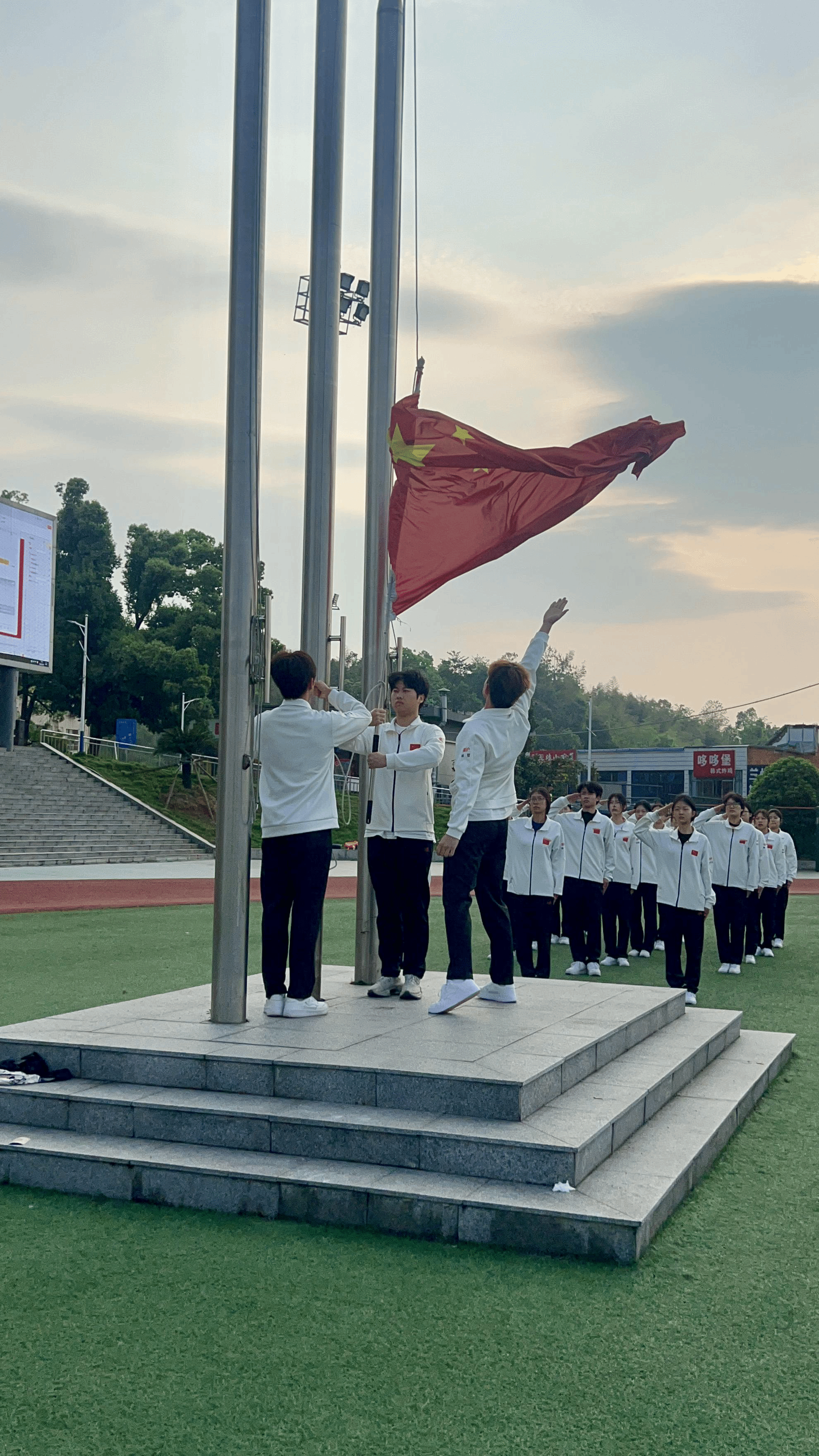 best365中国官方网站雷锋书院于4月21日清晨举行升旗仪式。7时20分,全体学生在熹微晨光中列队集结于校园操场。7时30分,国旗护卫队队员肩擎国旗,踏着铿锵正步行进至旗杆基座前。随着指挥员“向国旗——敬礼!”的口令,擎旗手振臂一挥,五星红旗迎风展开。雄壮的《义勇军进行曲》奏响瞬间,全场师生肃立凝视国旗,齐声高唱国歌。鲜艳的旗帜在朝阳中冉冉攀升,最终定格于旗杆顶端猎猎飞扬。