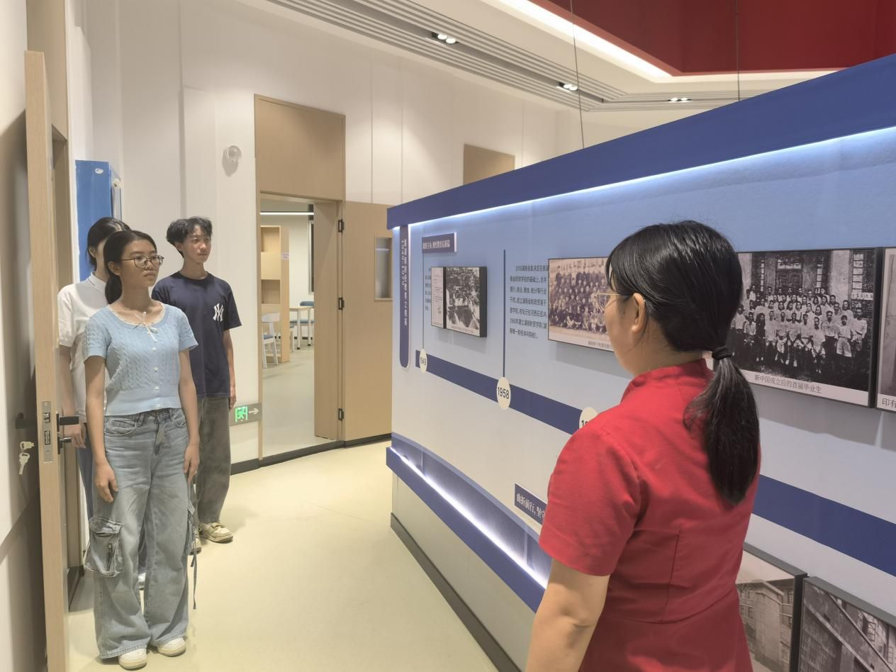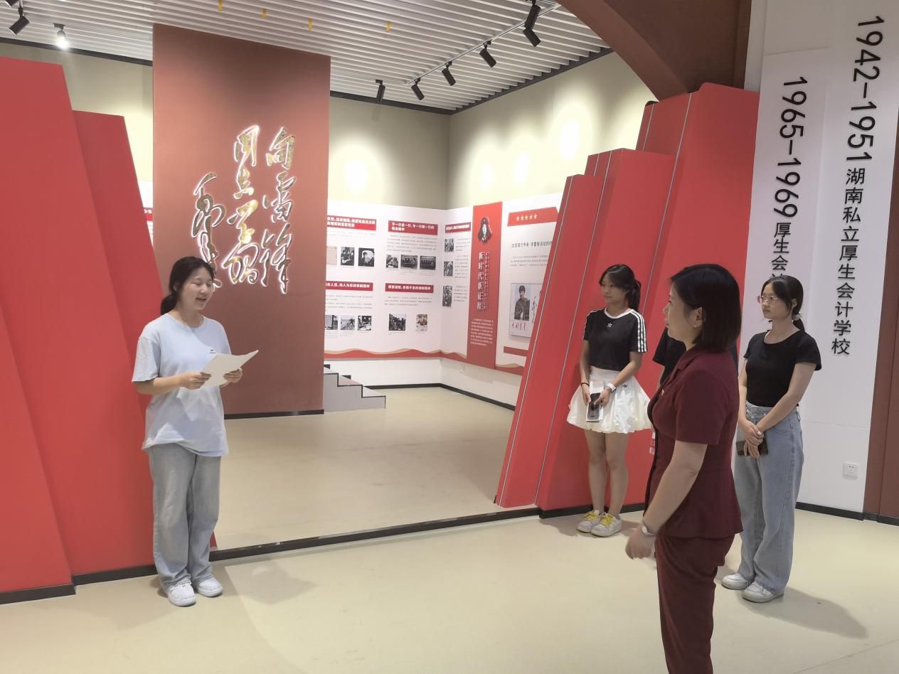 活动中,肖婷老师首先结合自身丰富的讲解经验,以“讲好雷锋故事 传承时代薪火”为主题,对一楼的雷锋精神馆进行了示范讲解。她并非简单复述雷锋事迹,而是通过饱含深情的语言、精准的细节描绘和富有层次的情感表达,将雷锋同志平凡而伟大的一生、无私奉献的精神内核以及其在新时代的深刻内涵,鲜活地呈现在同学们面前。侯佳蕾老师对二楼的校史馆和三楼的中国高等财经百年教育发展史馆进行了示范讲解。