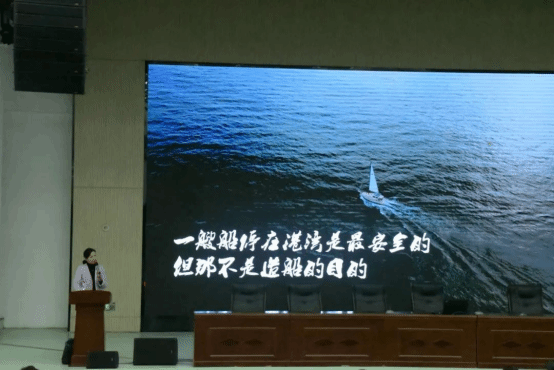 然后,她以幽默风趣的方式,从四个角度通过实际案例为我们分享了“如何设计大学生活”,角色创建,摸清主线;自我探索,挖掘资源;提升能力、积累优势;目标设定、发挥价值。她告诉我们只有设计好大学生活,才能更好的自我成长。