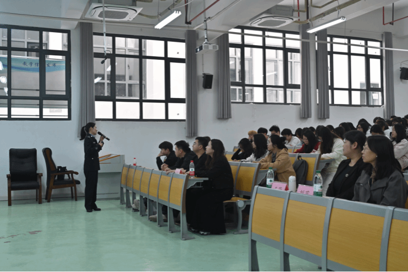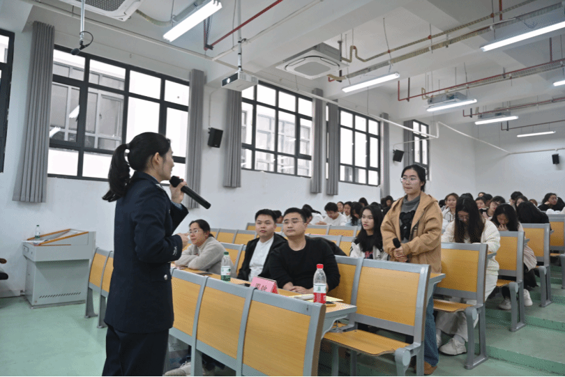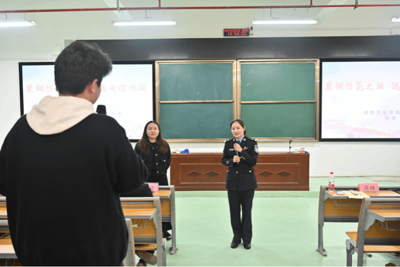 讲座中,范歆警官结合近期高发的电信网络诈骗案例,深入解析“刷单返利”“虚假投资”“冒充公检法”等常见骗局。范警官通过展示聊天截图,与同学们进行互动等形式,还原诈骗分子利用心理弱点步步设套的过程,将讲座氛围推向了最高潮。最后,范歆警官强调,任何要求转账、索要验证码的行为都需警惕,并现场传授预防反诈的技巧和应对反诈的方法。