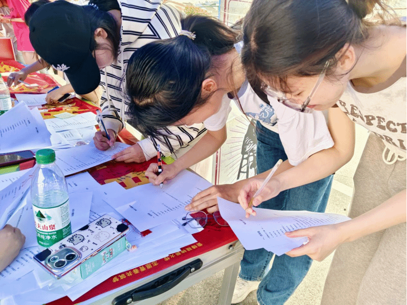 千人签字仪式现场,同学们有序排队,依次“传承雷锋精神,共筑志愿青春”横幅上签名承诺笔迹交织成一片赤诚的“雷锋红”活动现场同步发放雷锋主题书签,印有“勤学苦练,为人民服务”“向雷锋同志学习”“学习雷锋好榜样,传递青春正能量”等金句;还有雷锋徽章成为学生随身携带的精神指南。