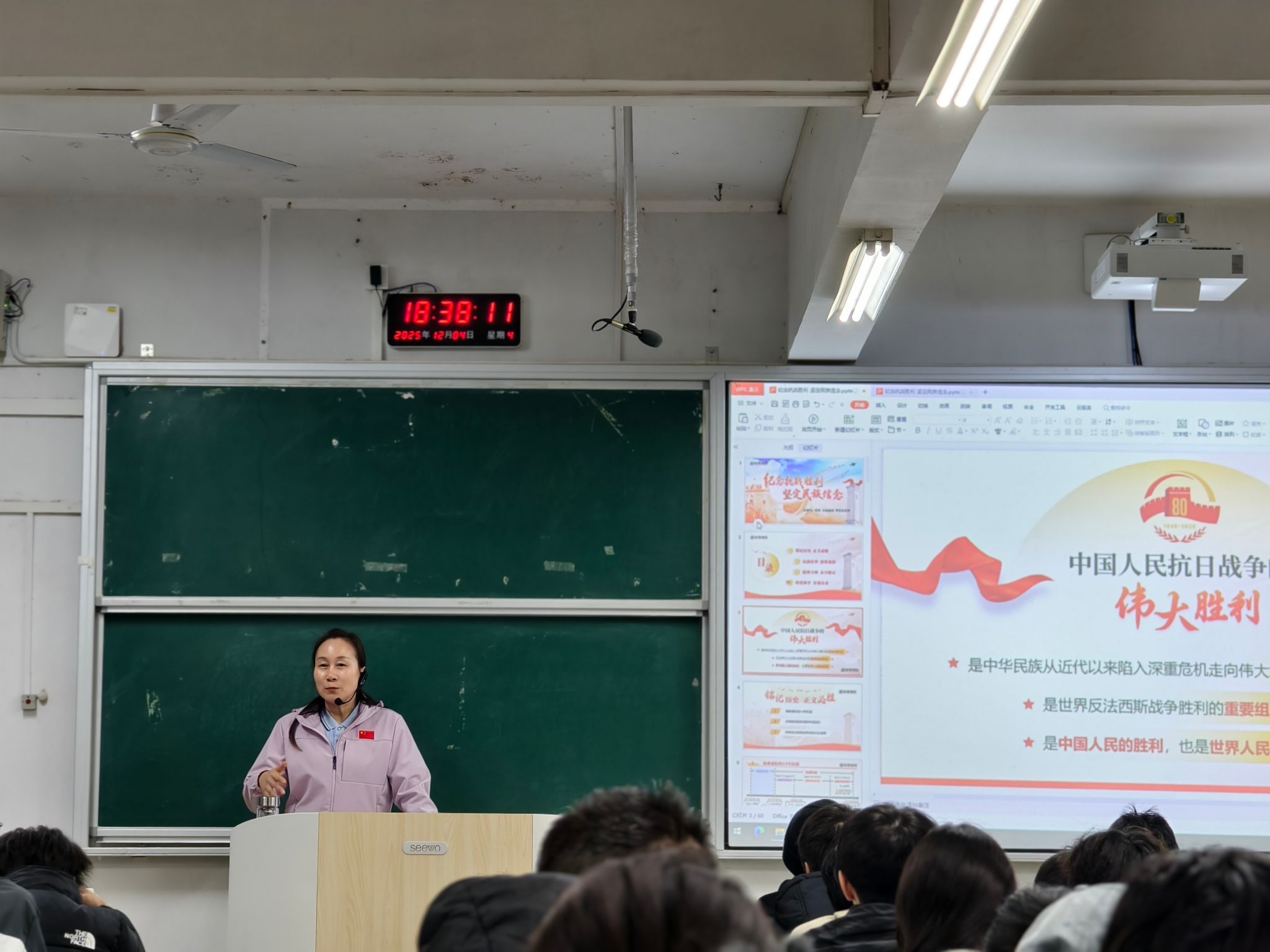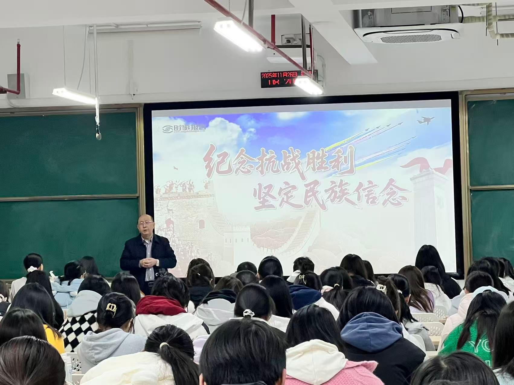 校党委副书记苏玲,副校长赵鹤平,纪委书记李雪山,副校长刘钟理,副校长潘爱民,副校长李小娟,党委委员、宣传部、统战部部长文炳勋分别围绕“纪念抗战胜利 坚定民族信念”“正确认识中国经济热点问题”“党的二十届四中全会精神解读”专题为学生讲授思政课,引导学生提升综合素养,将小我融入大我,在服务党和国家事业发展进程中实现人生理想和自身价值。