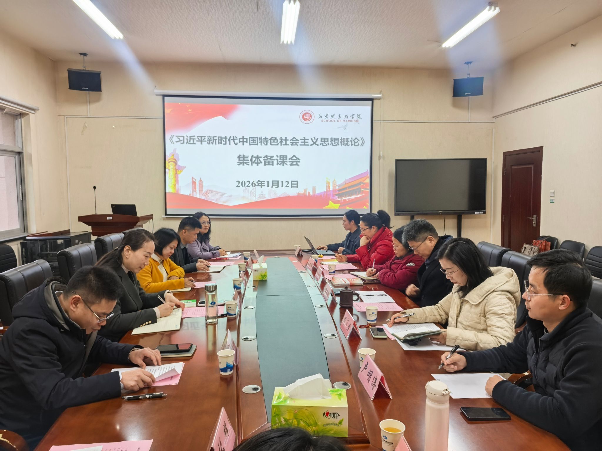 (本网讯)1月12日上午,校党委副书记、校长苏玲到马克思主义学院调研,实地了解马克思主义学院办公场地、博士工作室、学科平台建设等情况,并深度参加“习近平新时代中国特色社会主义思想概论”教研室集体备课。