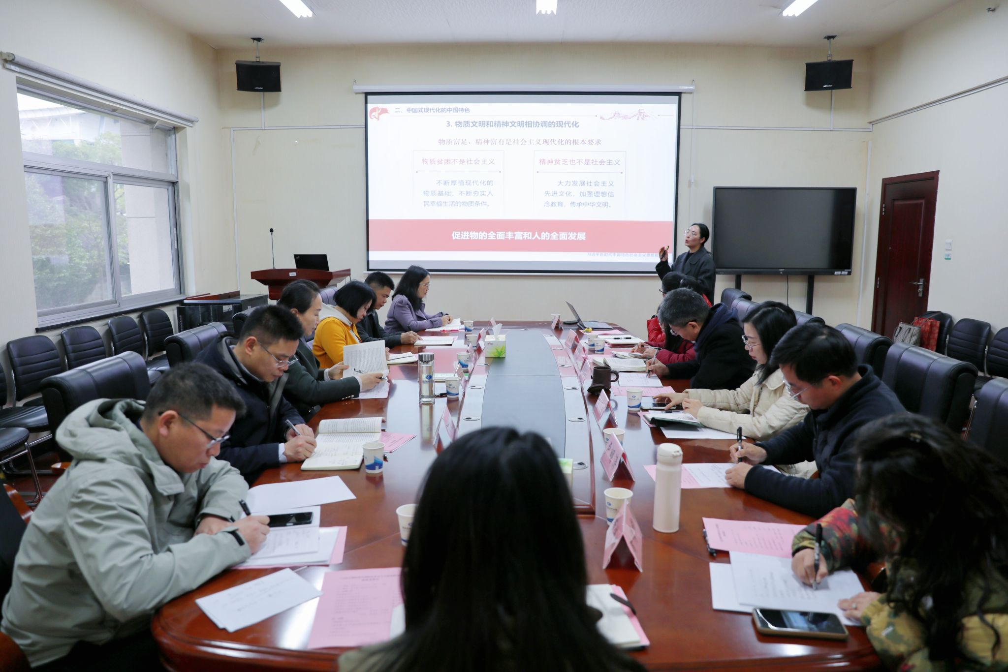 交流过程中,苏玲与参加集体备课的教师围绕提升教学质量、明确教学重点、精选教学案例、创新教学方法、做好学情分析以及推进思政“金课”建设等进行了深入研讨。