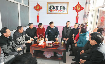 2017年1月24日,中共中央总书记、国家主席、中央军委主席习近平来到河北省张家口市,看望慰问基层干部群众,考察脱贫攻坚工作。图为习近平在张北县小二台镇德胜村徐海成家同村干部和村民代表座谈。 |