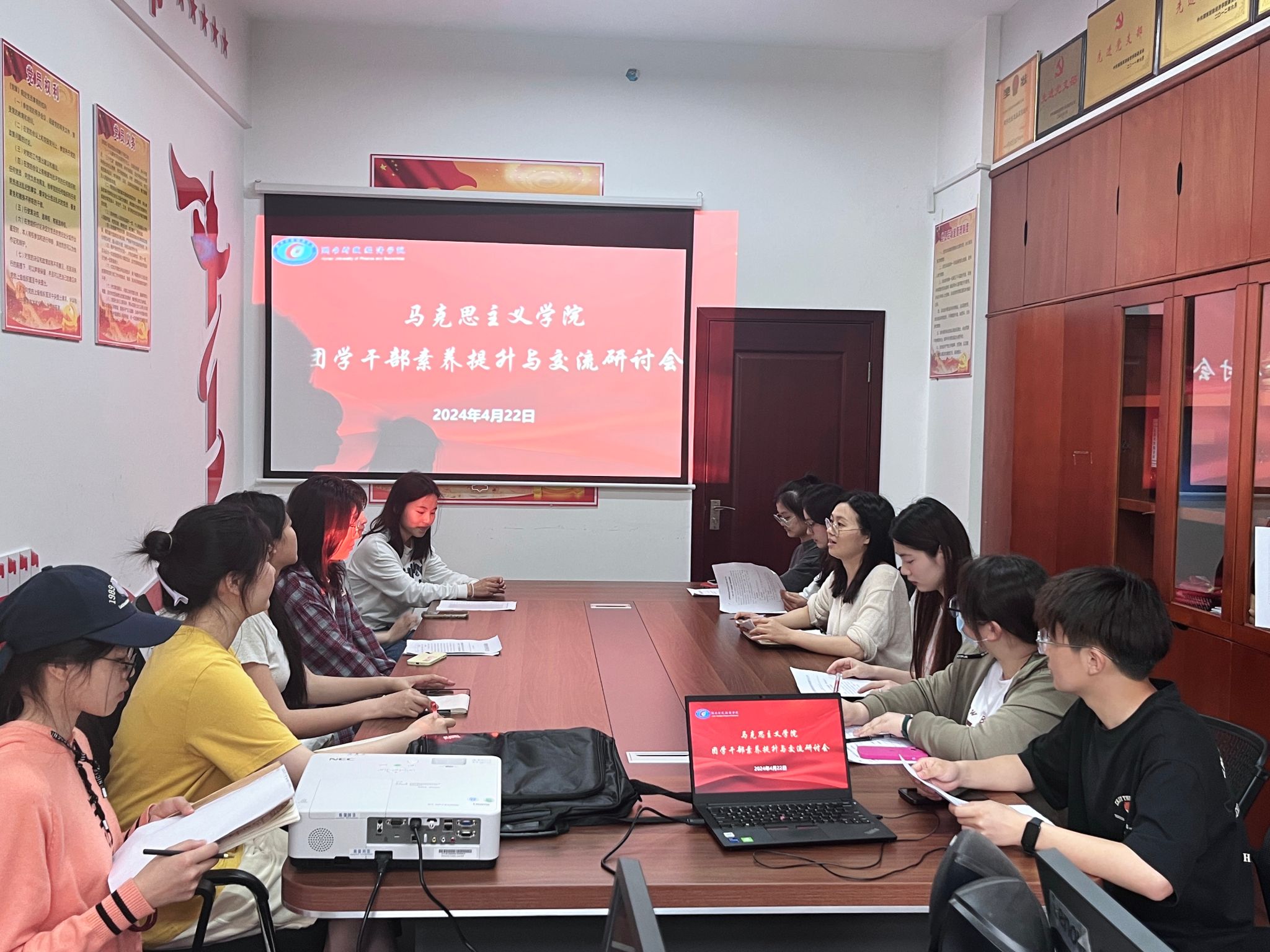4月22日下午,马克思主义学院在办公楼227办公室召开团学干部素养提升与交流研讨会。团总支书记周雄艳,2022级团学骨干代表参加了此次会议。
