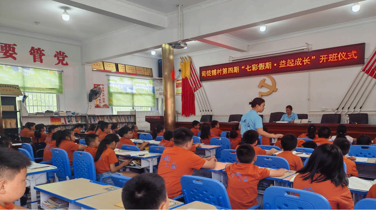 司徒铺村开班仪式上,村干部刘群飞代表村委会欢迎志愿先锋队的到来,期待孩子们在艺术课程中激发创作兴趣、感受艺术魅力。司徒铺村支教团副队长李可欣详细介绍了“播撒艺术的种子”主题活动规划,鼓励孩子们勇于表达、积极参与,开启充满创造力的艺术之旅。
