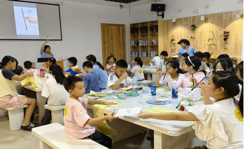 (本网讯)“横像小扁担,起笔轻轻按,行笔稳当当,收笔悄悄弹……”7 月15日的永安镇老种子实践基地,非遗教室里传来志愿者们清脆的童谣。50余名乡村孩子握着毛笔,在宣纸上歪歪扭扭地写下第一道横画,墨香与屋外的荷花香交织,在夏日风里酿成独特的文化滋味。