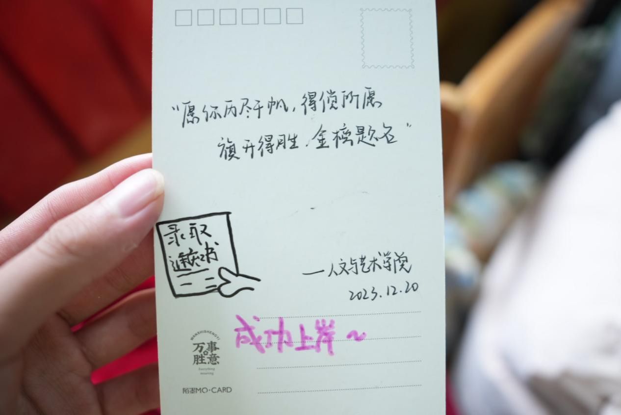 (考研“逢考必过”福袋和手写祝福明信片 伍立城/摄