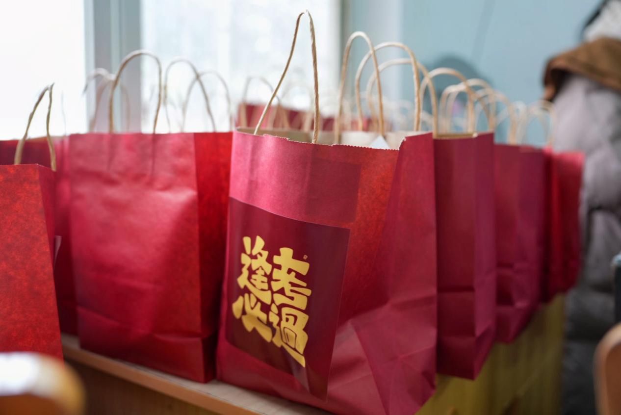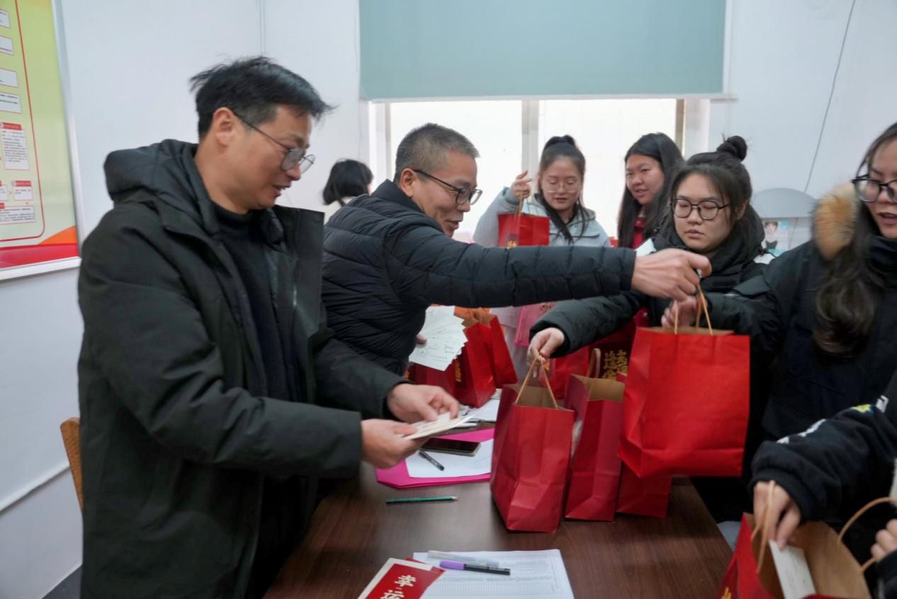 随后,各领导老师为考研学子送上了精心准备的考研“加油包”,激励学生坚定信心,加油拼搏。“加油包”包含“逢考必过”福袋、寓意一马“萍”川的苹果、心想事“橙”的橙子等新鲜水果以及由学生党员亲手绘制书写的祝福明信片。满载学院师生真挚心意的“加油包”在送至同学们手中的同时,也他们在寒冬感受到别样的温暖和力量