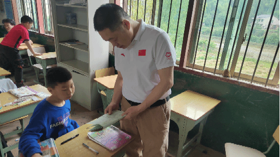 肖湘愚教授心系群众,来到帮扶对象朱光家中,赠送朱光子女以鞋子、学习用品和零食等生活、学习用具,鼓励他们成长成才,为中华之崛起而读书。并与朱光妻子攀谈,表示母亲要培养孩子正确导向,树立孩子社会主义核心价值观。