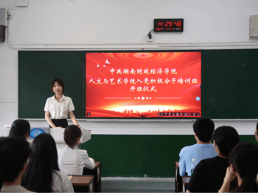(本网讯)为深入学习贯彻党的二十大精神,严格规范党员发展工作,5月21日,人文与艺术学院在1306教室隆重举行2025年上半年入党积极分子培训班开班仪式。学院党委副书记杨艳、学工办主任徐晶、学生党支部书记欧璐出席活动,全体参训学员共同参加。
