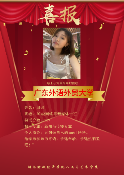 近几年,本校网络与新媒体专业考研成绩突出,多名网媒学子在激烈的“考研”大战中脱颖而出,成功上岸湖南大学、暨南大学、湖南师范大学、合肥工业大学、浙江传媒学院、首都师范大学等多所著名高校的新闻与传播专业,发挥网络与新媒体专业知识的优势,继续在他们所热爱的领域深造。