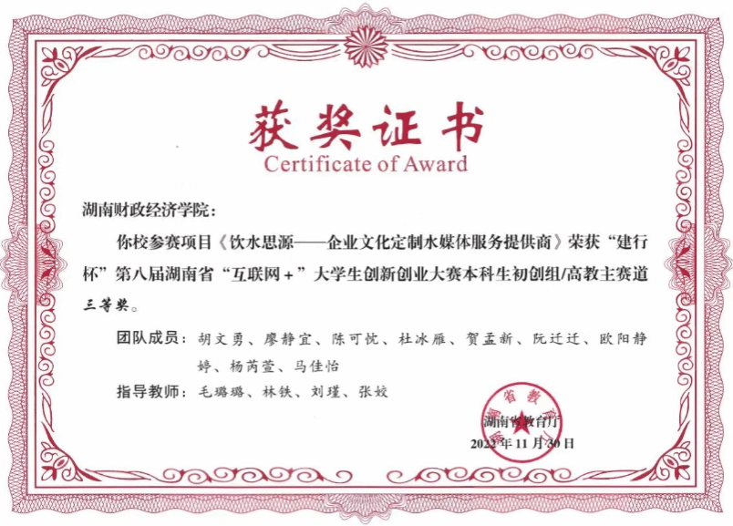 《长沙夏忆服饰》在建行杯“互联网+”大赛获三等奖