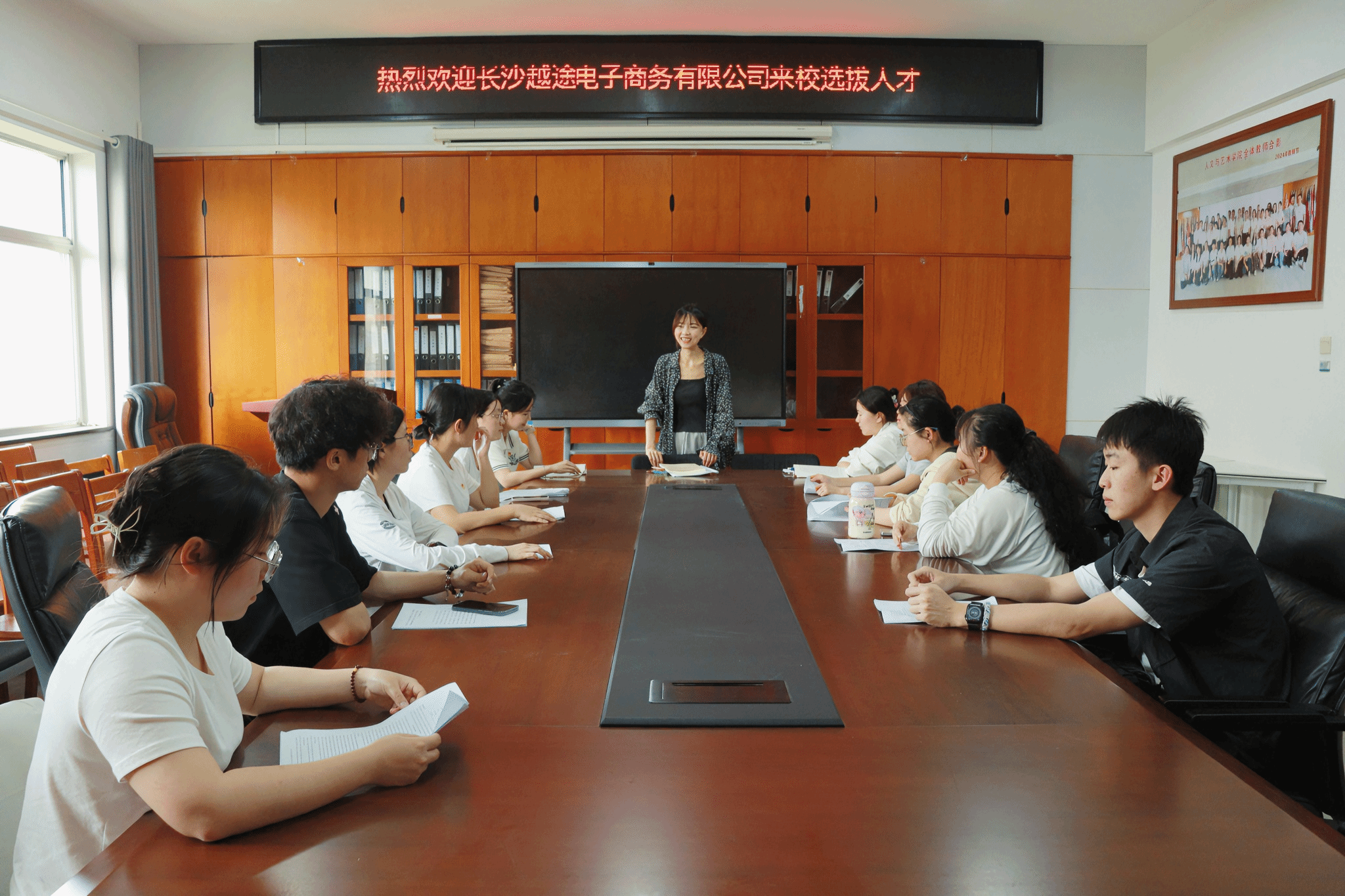 (本网讯)为拓宽学生就业渠道,助力学生高质量就业,2025年5月6日下午,人文与艺术学院与长沙越途电子商务有限公司在办公楼8楼817会议室联合举办“职通未来”宣讲会。本次宣讲会吸引了人文与艺术学院众多应届毕业生参加,现场气氛热烈,互动频繁。