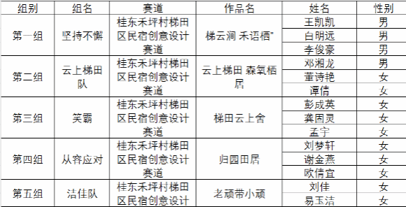 本次预选赛围绕“中国氧都•凉快桂东——山水氧天下 民宿享清凉”主题,从桂东禾坪村梯田区民宿创意设计赛道、桂东中秋谷里民宿空间设计与创意策划赛道、桂东民宿文旅短视频创作三个赛道展开角逐。预选赛分作品展示汇报(8分钟)和现场答辩(4分钟)两个环节,经过2小时的精彩呈现和激烈角逐,最终评选出了5支队伍代表学校参加全省复赛。