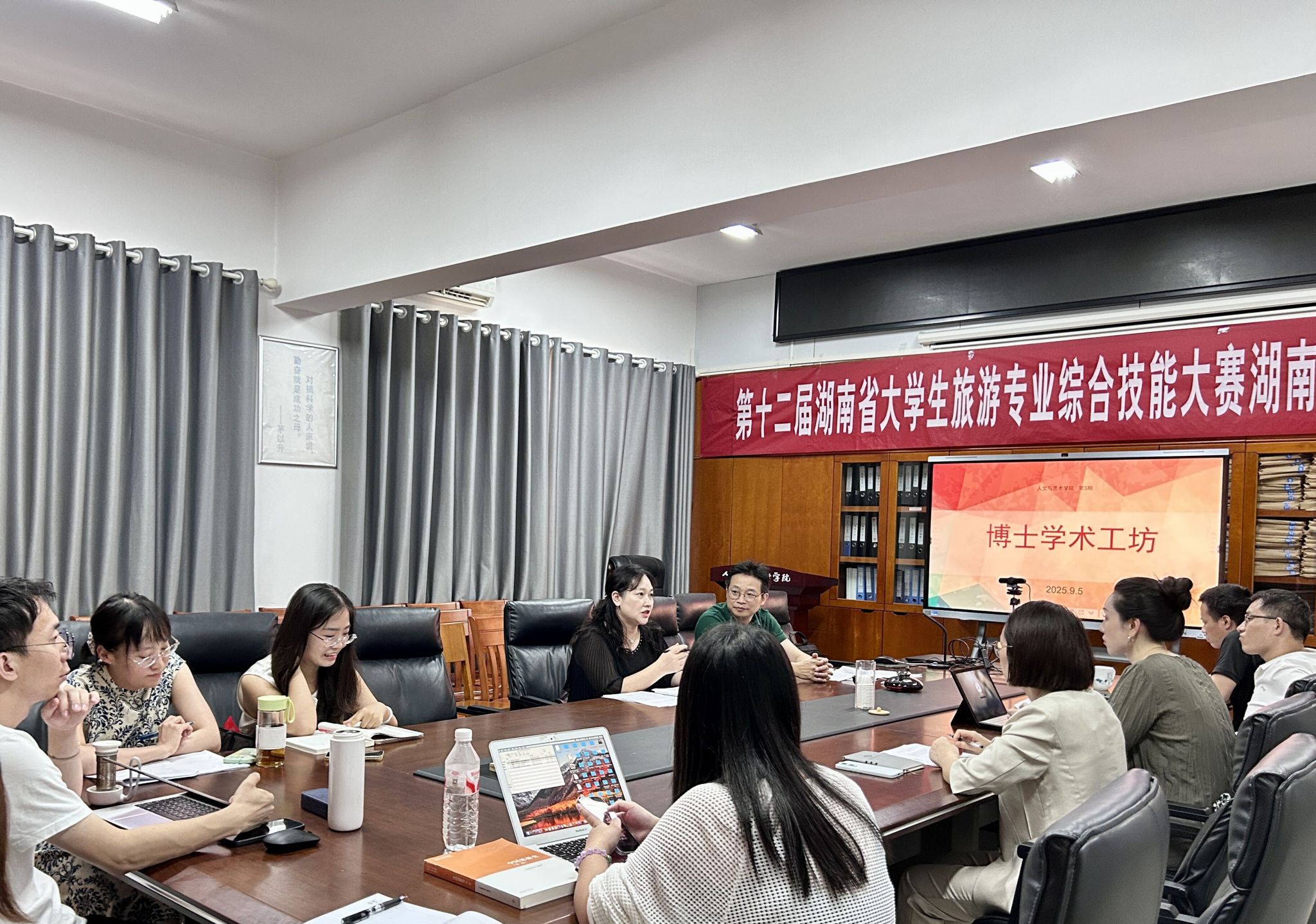 (本网讯)9月5日下午,人文与艺术学院在817会议室举办第三期博士学术工坊。本期工坊由王美霞副院长主持,尹金凤教授、林铁教授作为与谈人参与,年颖、王献峰、胡显斌三位博士带来精彩学术分享。