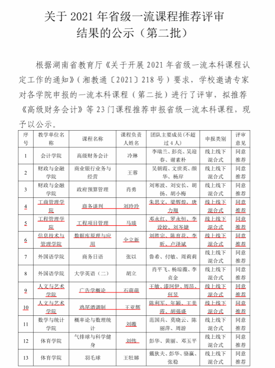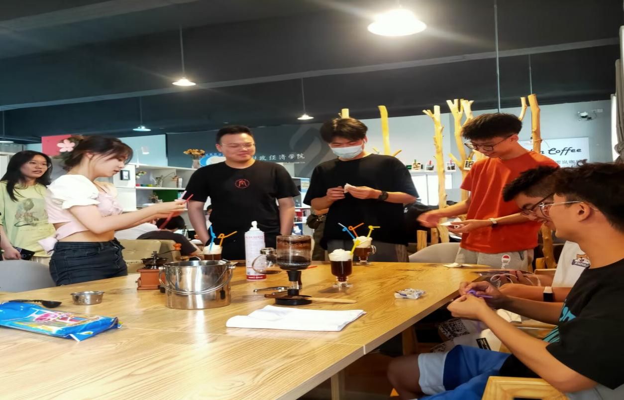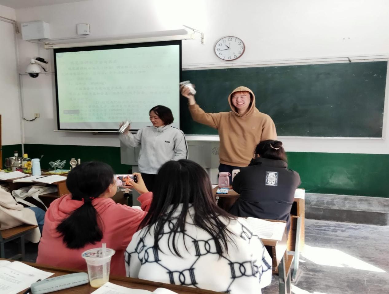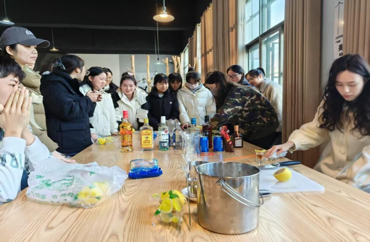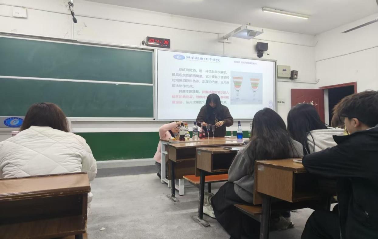 坚持参与式教学,深受学生喜爱,被督导评为优秀教学案例。2019年到校任教以来,王亚辉开设了《鸡尾酒调制》《酒水知识与酒文化》等选修课,王亚辉在讲授酒水课程时特别注重培养学生的鸡尾酒创作能力,设置了品酒、斟酒、摇壶、抛瓶、调制、装饰物制作等实践环节,并以身示范将这些技能传授给学生(图2),学生再根据老师的示范亲自动手实践(图3-图8)。《鸡尾酒调制》作为全校通识选修课程,深受学生喜爱,问卷调查结果显示本校学生对该门课程感兴趣的同学比例达70%(图9),且自2019年开始该课程以来,几秒钟时间内选择该课程的人数就达到学校限定的人数规模。2021年,《鸡尾酒调制》课程被学校推荐为全校23门省级一流课程之一(图10)。《酒水知识与酒文化》作为专业选修课程在2025年4月的督导检查中被作为全校优秀课程案例分享(图11)。