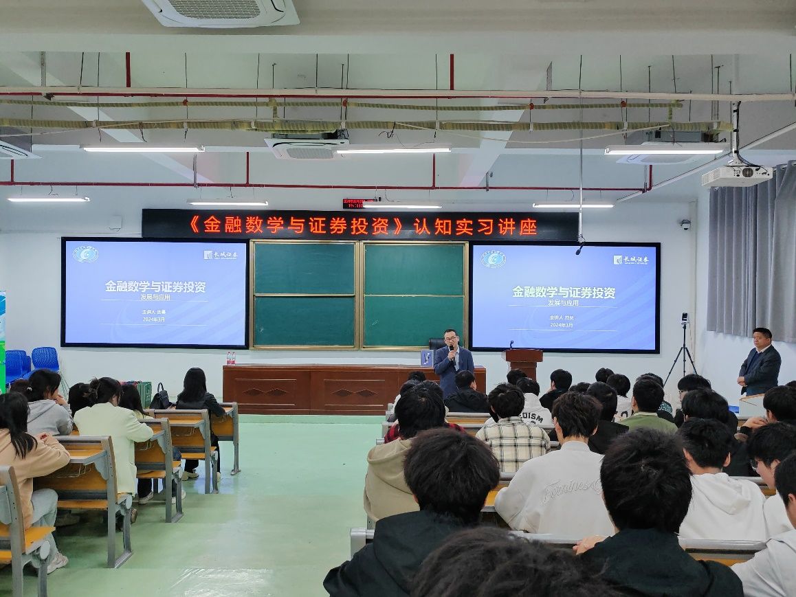 3月26日下午,数学与统计学院邀请长城证券公司资深投资经理曾昊在雷锋校区至诚楼L1115阶梯教室为2023级金融数学专业的学生做专业认知实习讲座。讲座由数学与统计学院副院长范国兵主持。