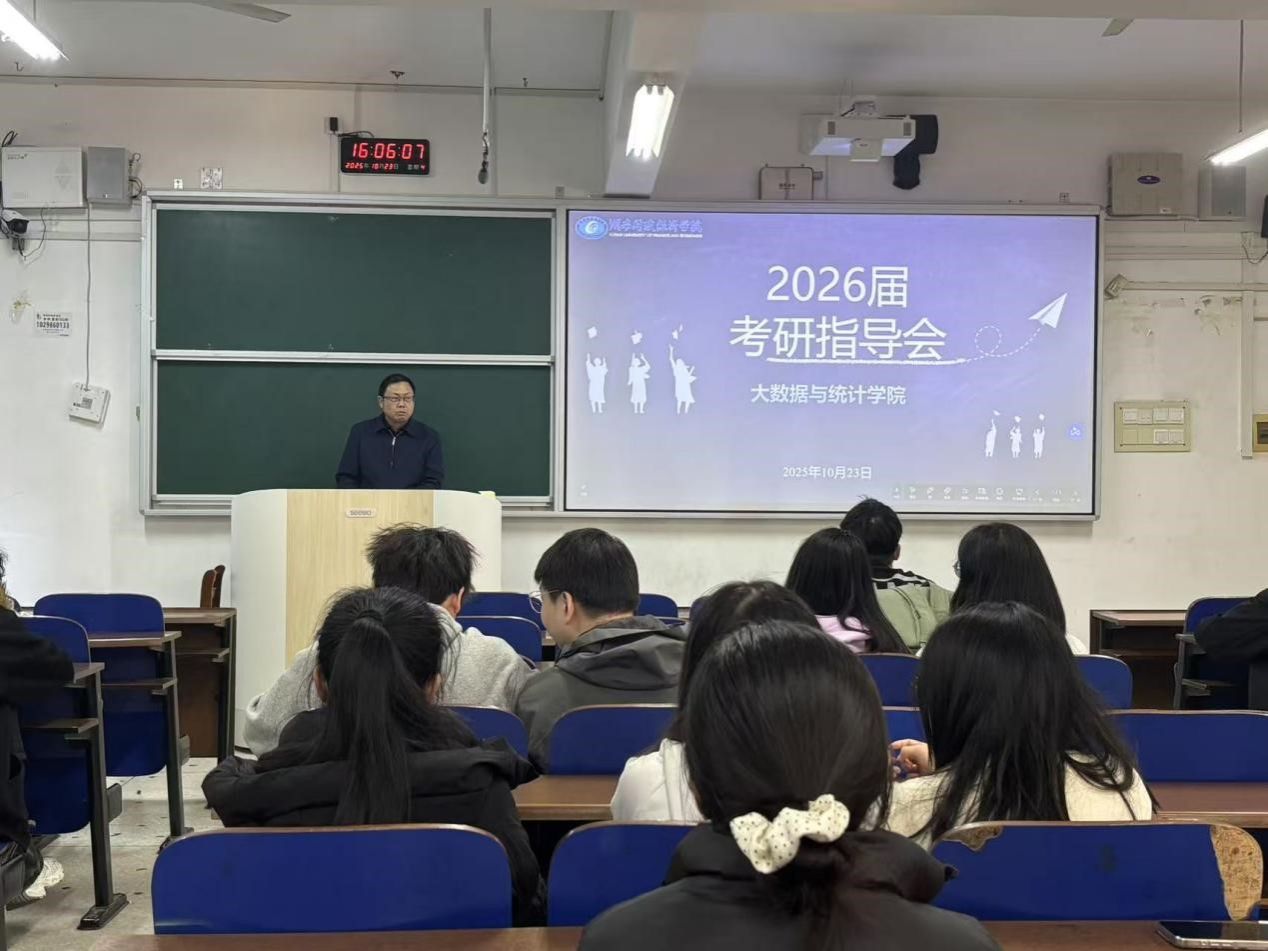 “昨夜星光,为研途而亮;今日指引,为梦想加码。”本次考研指导会成功举办,不仅为学子们带来了专业的备考指导,更搭建了师生交流的桥梁。这场指导会是2026届考研学子冲刺征程的号角,愿各位学子以此次指导会为新起点,笃定目标、脚踏实地,在研途上全力以赴。大数据与统计学院将始终作为学子们的坚强后盾,期待与大家在顶峰相见,共赴理想之约!