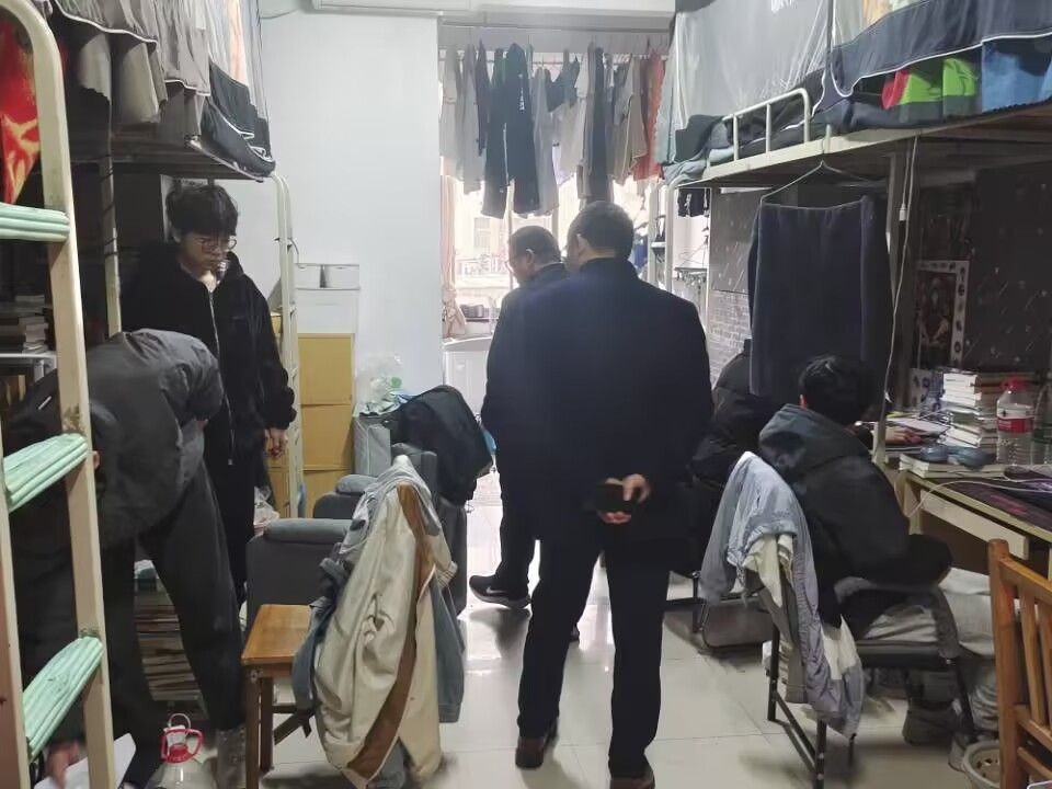 在走访宿舍过程中,王萱一行深入学生宿舍各楼层,对每间宿舍和角落进行了卫生、消防设施、用电安全等方面的安全隐患排查。重点对学生宿舍内的违章电器、乱拉电线等现象进行了严厉查处和批评整改,提醒同学们严格遵守学校安全管理等规定,共同维护好宿舍安全与卫生。