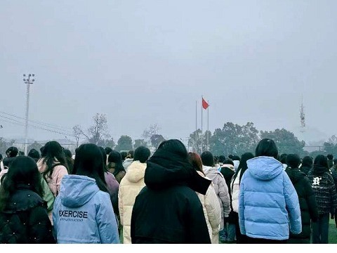龙腾虎跃启新程,2月26日清晨,数学与统计学院与厚生国际教育学院在田径场举行2023-2024学年第二学期开学升国旗仪式。参加此次升旗仪式的两个学院的院领导、学工部教师、辅导员以及百余名学生代表。